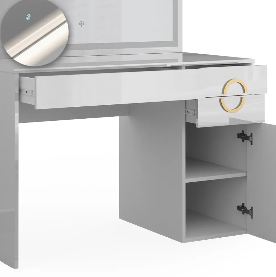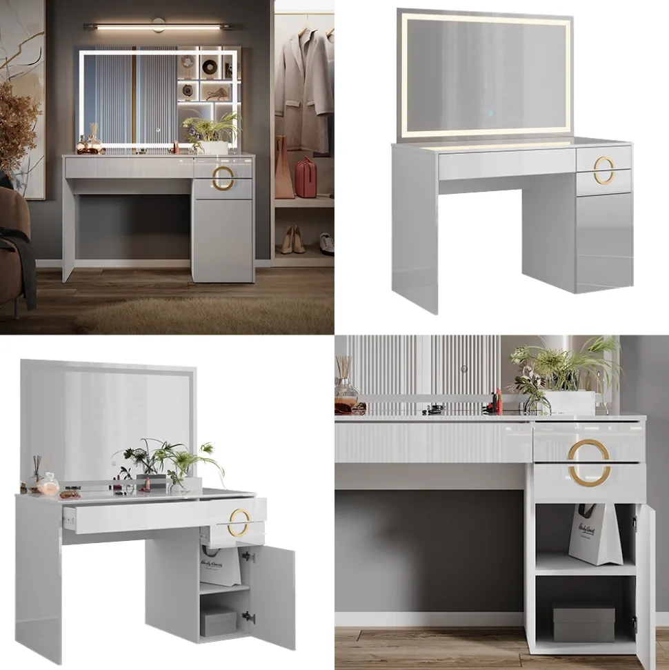 - Entdecken Sie den Vicco Schminktisch Adela im strahlenden Weiß Hochglanz mit einem LED-Spiegel. Ihr perfekter Begleiter für Make-Up und Styling. Mit praktischer Schublade.