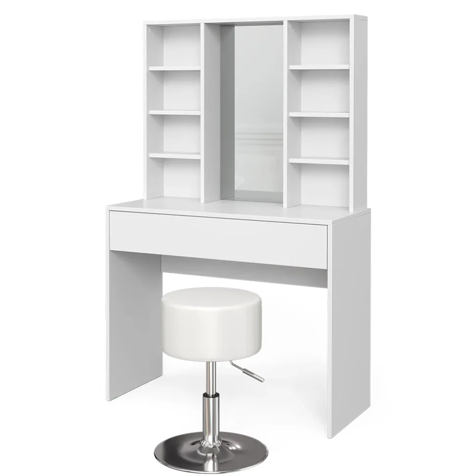 - Genießen Sie die Vorzüge eines großzügigen Spiegels am Frisiertisch. Ideal, um Ihr Styling zu perfektionieren und Ihr Erscheinungsbild stets im Blick zu behalten.