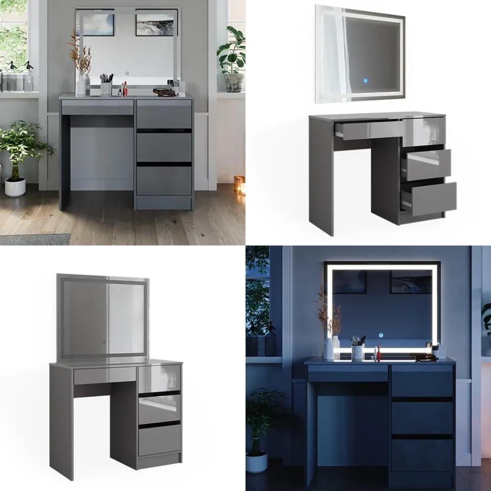 - Erfreuen Sie sich an unserem exquisiten Vicco Schminktisch-Set Sherry in edlem Anthrazit Hochglanz: neben der Frisierkommode mit einem LEDSpiegel und einem bequemen Hocker. Ideal für Make-Up-Styling.