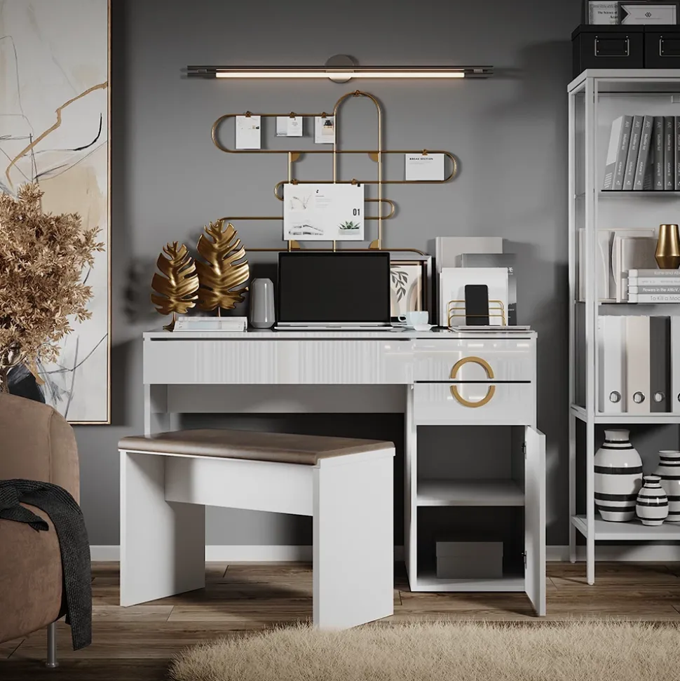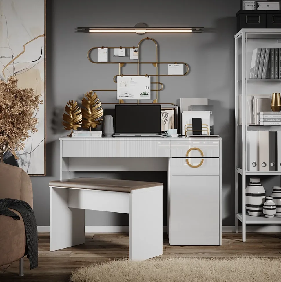 Die Möbelserie „Adela“ präsentiert elegante Frisiertische, die mit ihrem zeitgemäßen Design und funktionalen Eigenschaften eine stilvolle Ergänzung für Ihr Schlafzimmer darstellen. Mit „Adela“ schaffen Sie einen Ort der Schönheit und Pflege, um sich morgens in Ruhe fertigzumachen.
