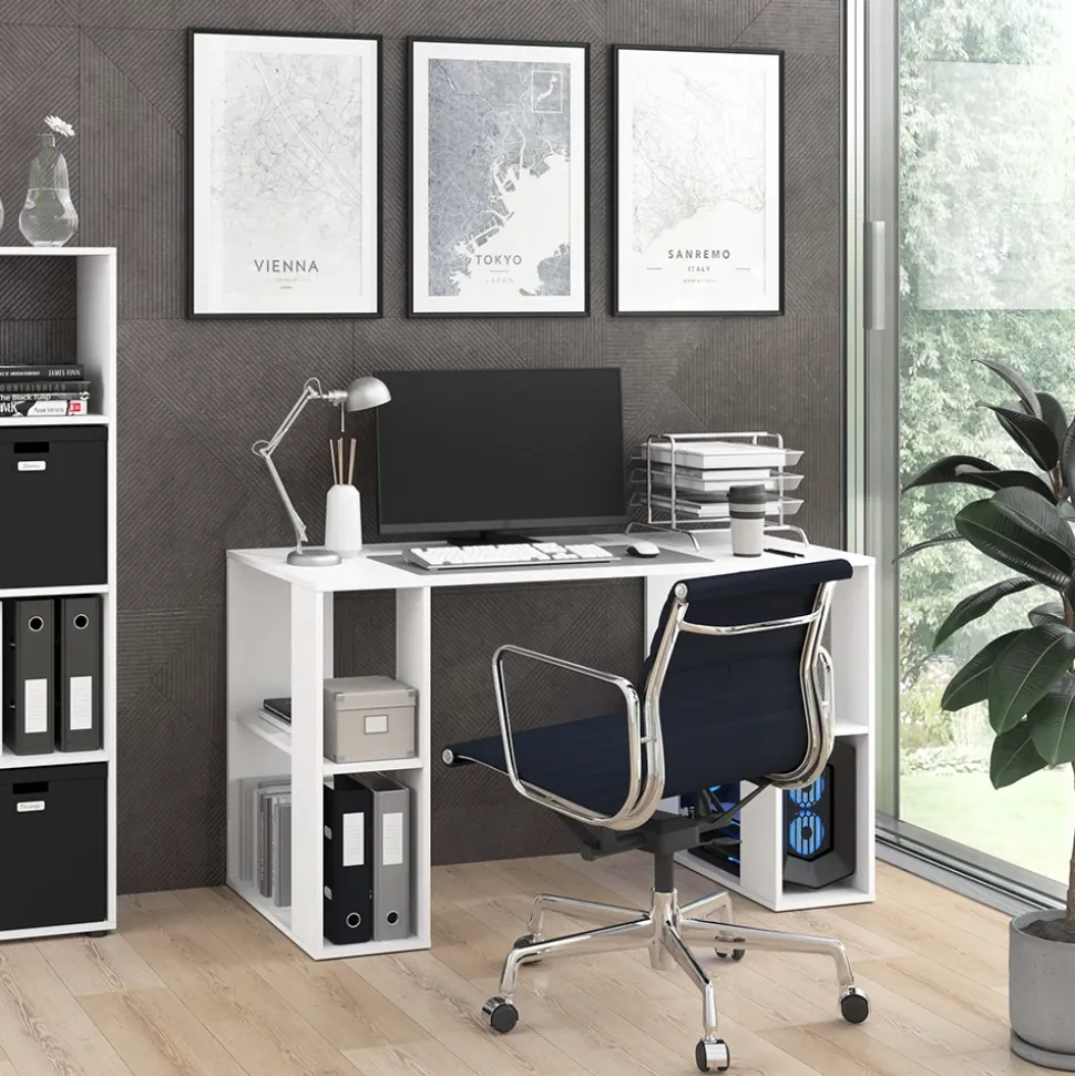 Der Schreibtisch Arian ist der perfekte Begleiter für das moderne Homeoffice. Mit seinem funktionellen Design und den offenen Regalen bietet er viel Stauraum für alle Arbeitsutensilien. Durch das Regal für die Systemeinheit lässt sich der PC einfach und platzsparend unterbringen. Der Schreibtisch ist besonders für kleine Räume geeignet und lässt sich dank seines zeitlosen Designs problemlos mit anderen Möbelstücken kombinieren. Ob als Bürotisch für die Arbeit oder als Computertisch für das Gaming, der Arian überzeugt mit seiner Vielseitigkeit und Flexibilität. Sorgen Sie jetzt für Ordnung und Produktivität in Ihrem Homeoffice mit dem Schreibtisch Arian!