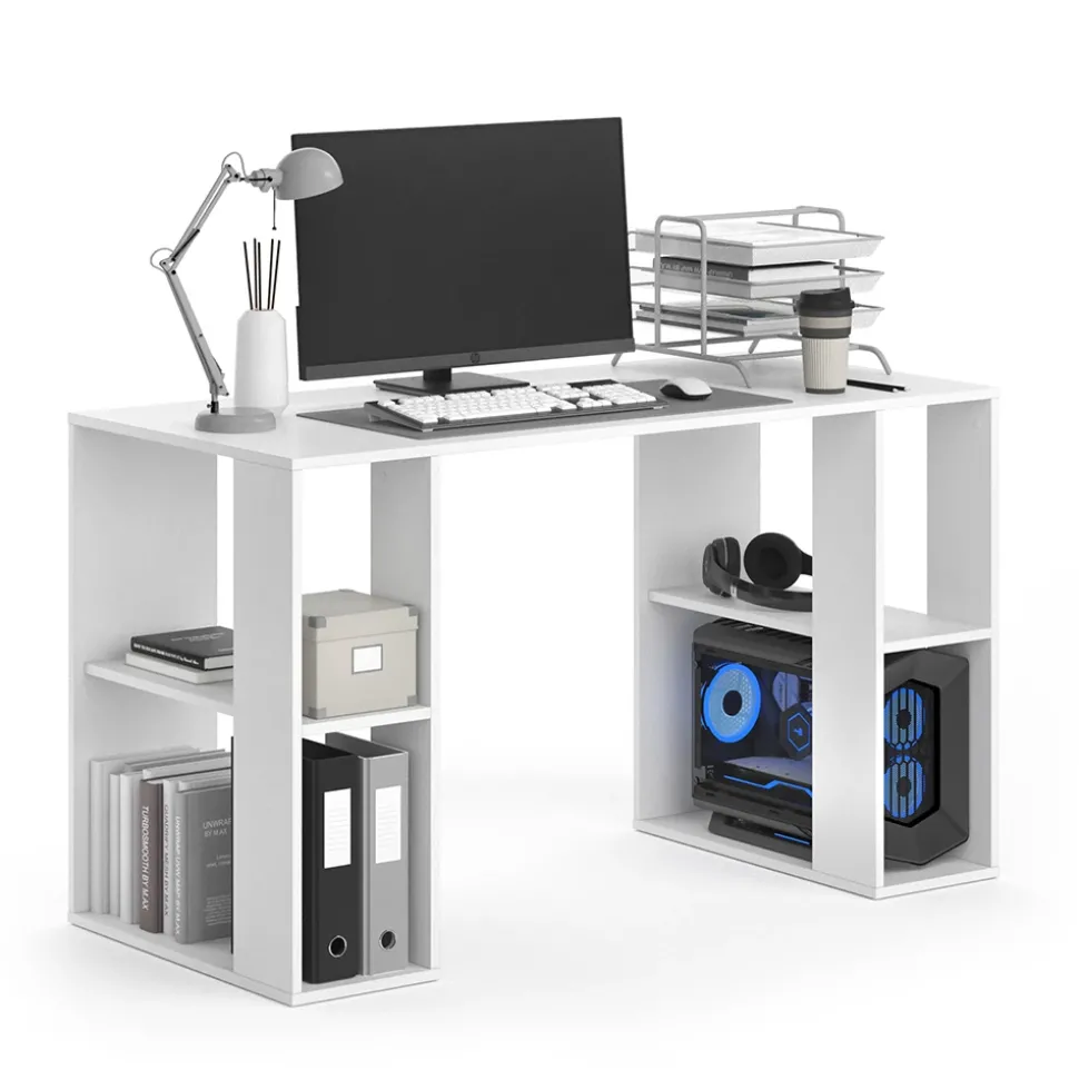 - Der Arbeitstisch für das Büro verfügt über offene Regale und eignet sich ideal für die Aufbewahrung von Systemeinheiten. Perfekt für kleine Räume!