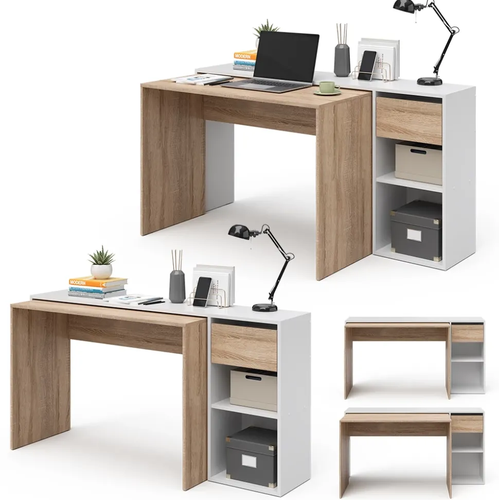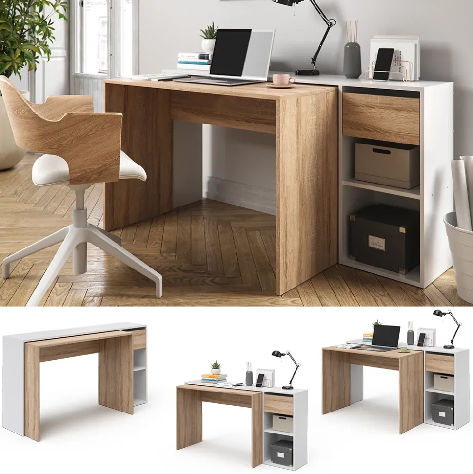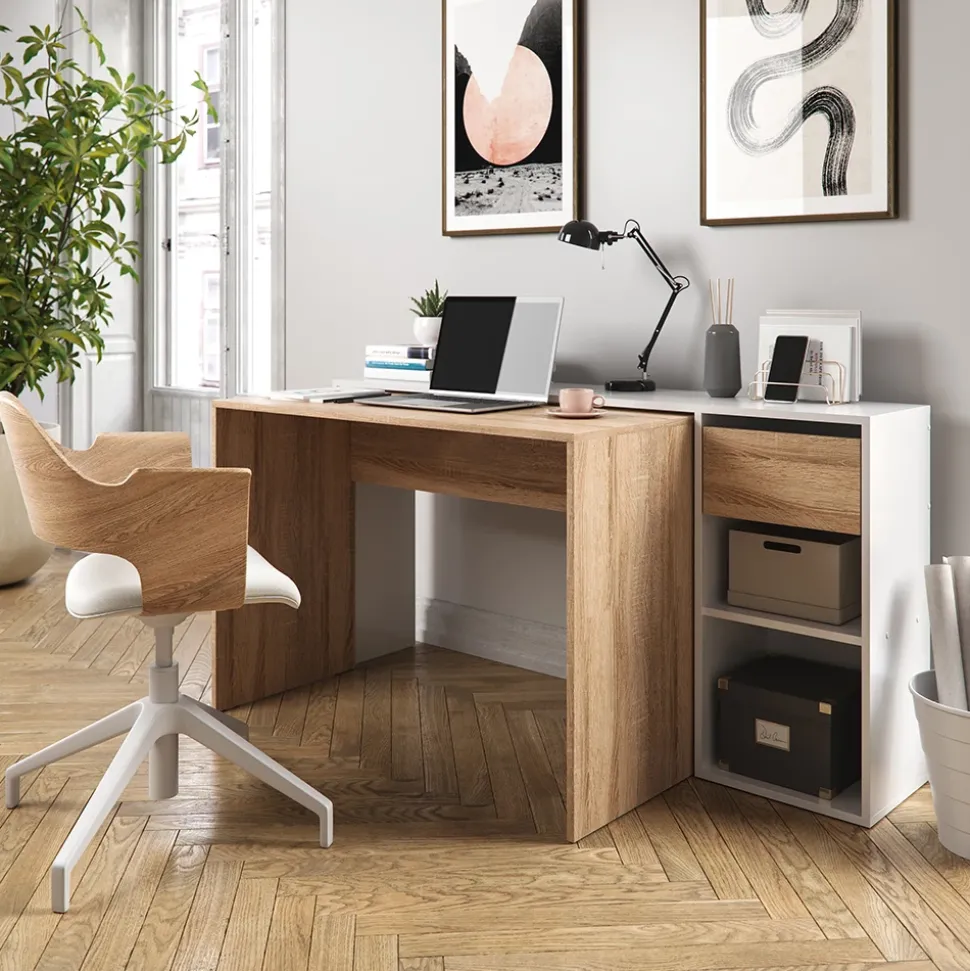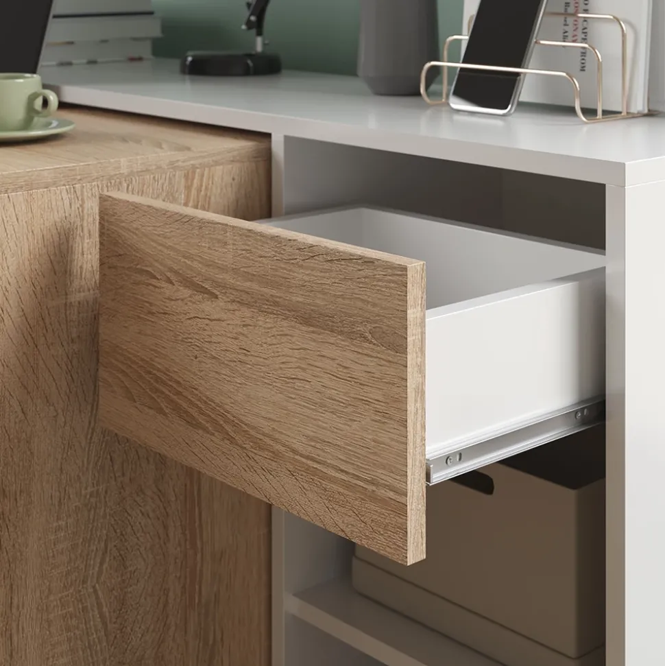- Der Arbeitstisch für das Büro bietet mit einer ausziehbaren Schublade und zwei offenen Fächern viel Stauraum und einen bequemen Arbeitsplatz.