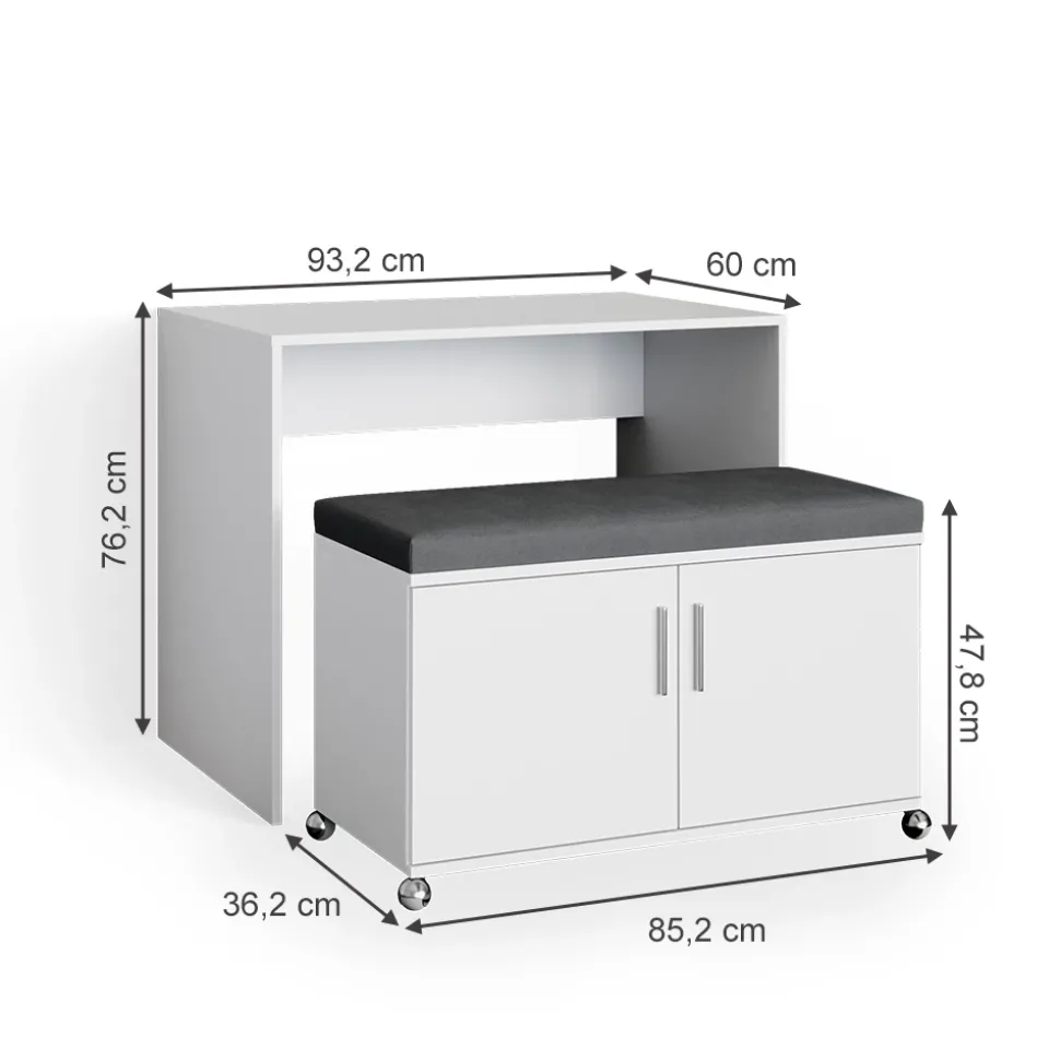 - MAßE: Der Bürotisch rollbar hat eine Breite von 93 cm, eine Höhe von 76 cm und eine Tiefe von 60 cm. Alle detaillierten Größen sind auf den Fotos angegeben.