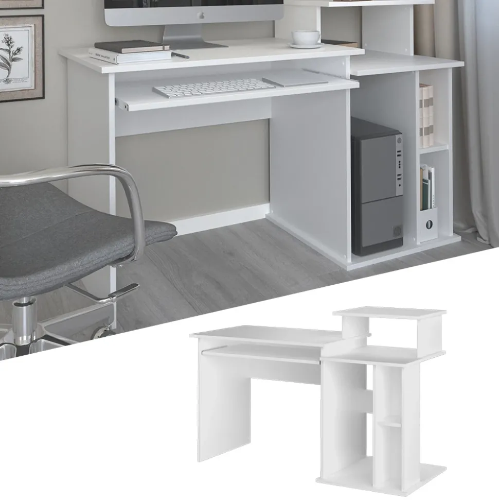 - Der Arbeitstisch für das Büro bietet eine Systemeinheit-Regal, eine ausziehbare Tastaturablage und einen bequemen Arbeitsplatz. Ideal für produktive Arbeitstage.
