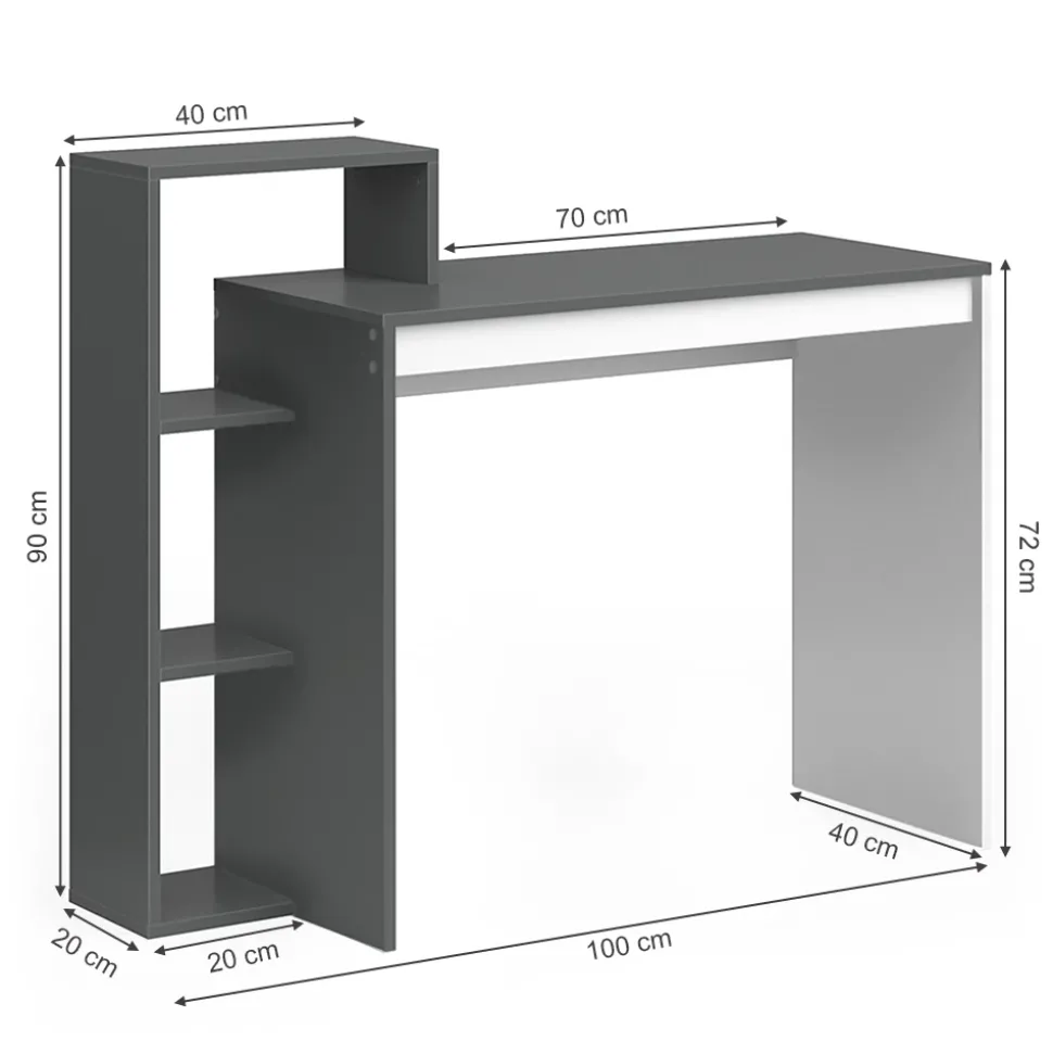 - MAßE: Der Bürotisch mit Stauraum hat eine Breite von 100 cm, eine Höhe von 90 cm und eine Tiefe von 40 cm. Alle detaillierten Größen sind auf den Fotos angegeben.