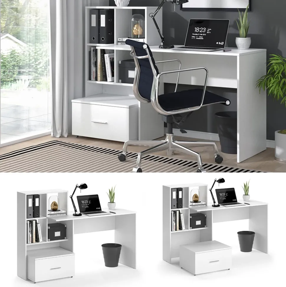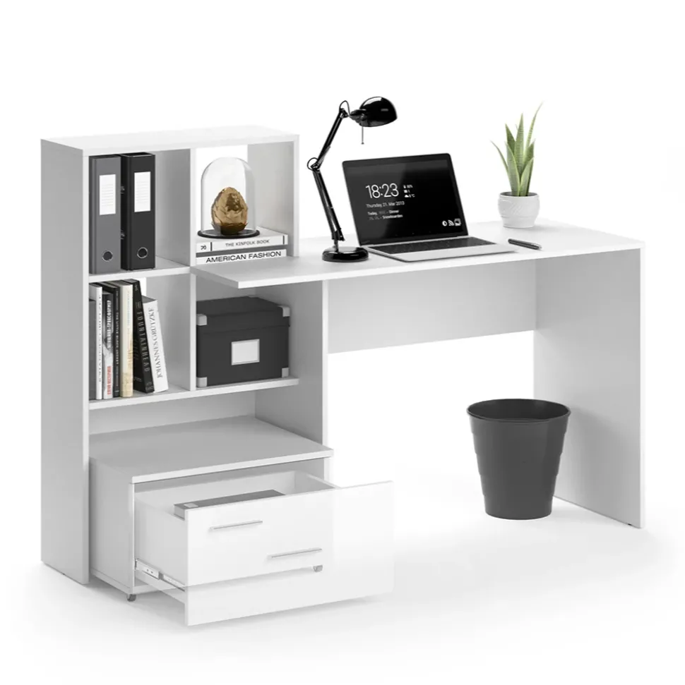 - Der Computertisch mit Schubladen bietet reichlich Stauraum mit einer ausziehbaren Schublade und offenen Regalen. Ideal für ein produktives Arbeitsumfeld.