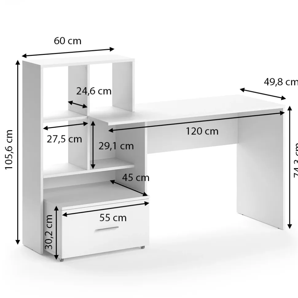 - MAßE: Der Bürotisch mit Stauraum hat eine Breite von 149,2 cm, eine Höhe von 105,6 cm und eine Tiefe von 50 cm. Alle detaillierten Größen sind auf den Fotos angegeben.
