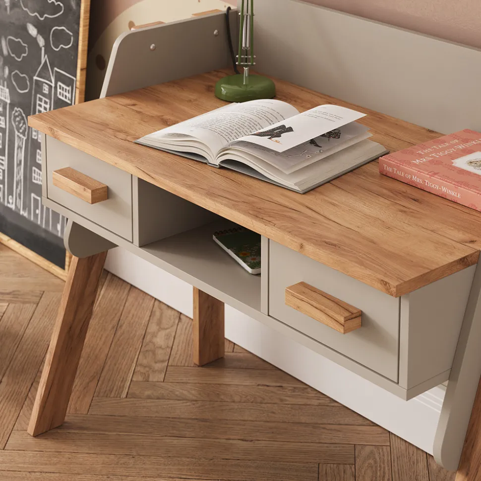 Entdecken Sie den Schreibtisch Malia – den perfekten Begleiter für kreative Köpfe! Ob Hausaufgaben, Bastelprojekte oder spannende Computerspiele, dieser vielseitige Bürotisch passt sich Ihrer Entwicklung an, dank der 4-stufigen Höhenverstellung. Mit zwei gut durchdachten Schubladen und einer offenen Ablage bietet Malia ausreichend Stauraum für all Ihre Schätze. Sein modernes Design fügt sich nahtlos in jedes Kinderzimmer ein und erweckt das Raumgefühl zum Leben. Schaffen Sie einen inspirierenden Platz, an dem Erinnerungen entstehen und Träume wachsen – mit Malia wird jeder Tag zum Abenteuer des Lernens!