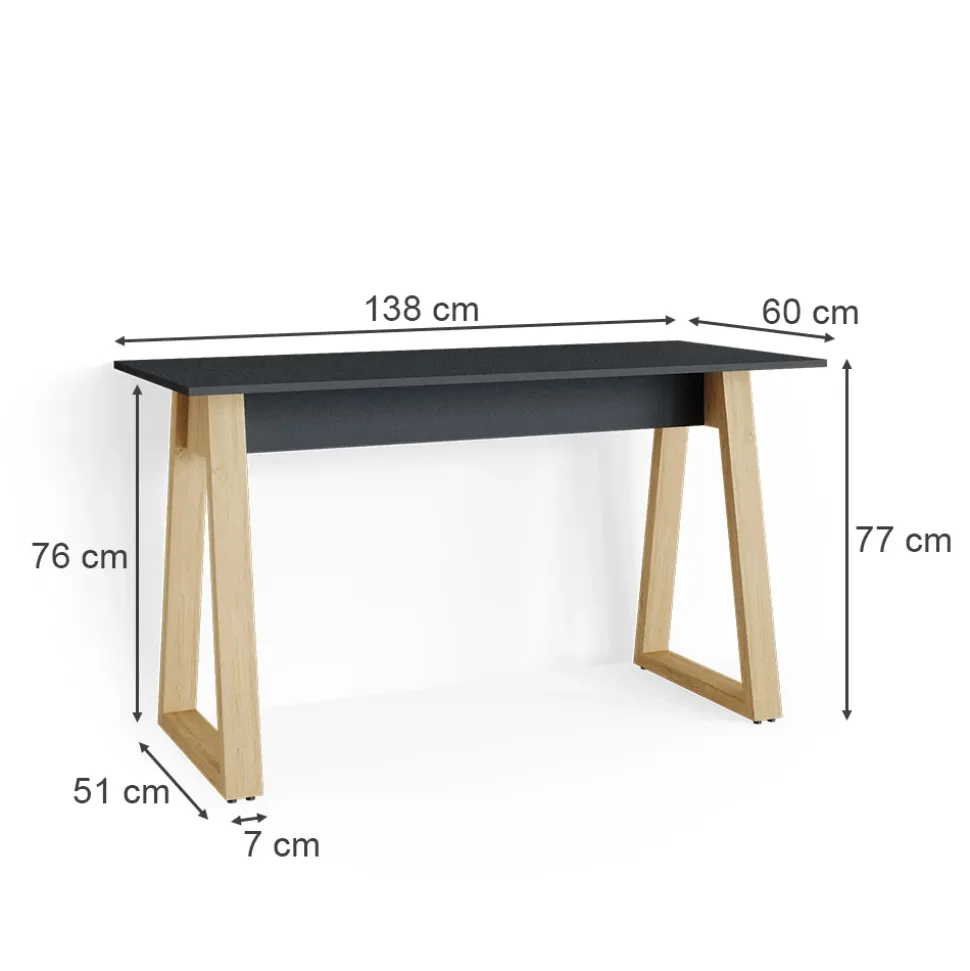 - MAßE: Der Bürotisch hat eine Breite von 138 cm, eine Höhe von 77 cm und eine Tiefe von 60 cm. Alle detaillierten Größen sind auf den Fotos angegeben.