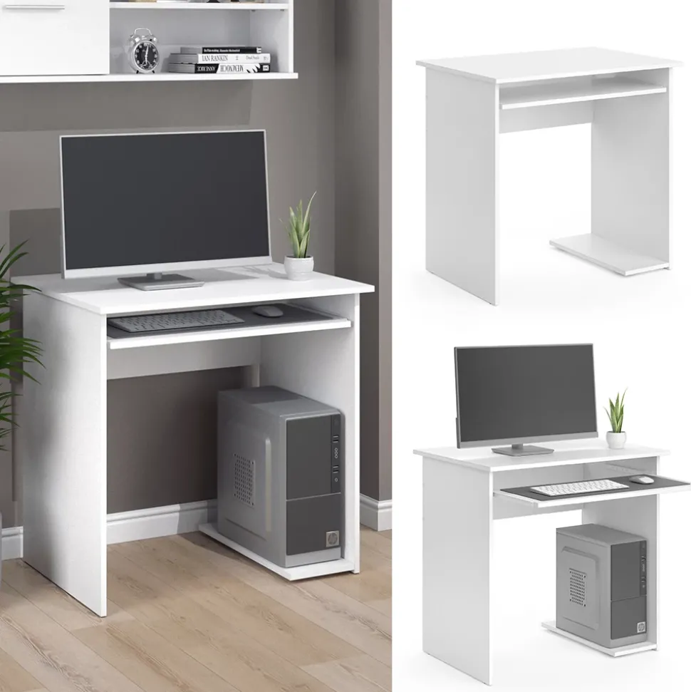 - Der Arbeitstisch für das Büro ist ideal für kleine Räume, da er eine ausziehbare Tastaturablage und Platz für eine Systemeinheit bietet.