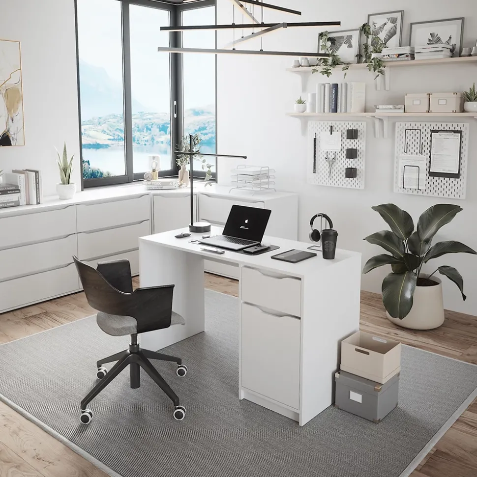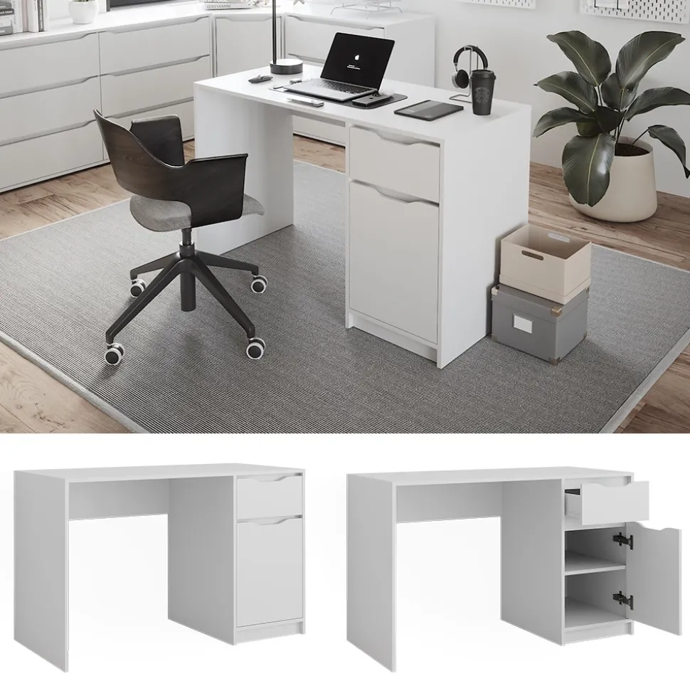 - Der Arbeitstisch für das Büro verfügt über eine ausziehbare Schublade und ein geschlossenes Fach für zusätzlichen Stauraum. Der Arbeitsplatz ist komfortabel und ideal für den täglichen Gebrauch.