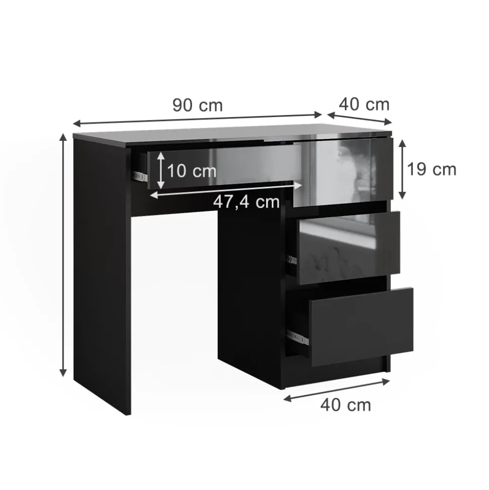 - MAßE: Der Bürotisch mit Stauraum, mit Schubladen hat folgende Abmessungen: Tiefe 40 cm, Breite 90 cm und Höhe 75 cm. Alle detaillierten Maße sind auf den Fotos angegeben.