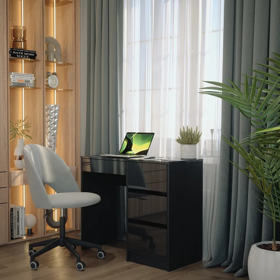 - Der PC-Tisch für das Homeoffice „Sherry“ ist eine gute Entscheidung. Mit seinem stilvollen Aussehen passt er in jede Wohnung und ist einfach zu bedienen.