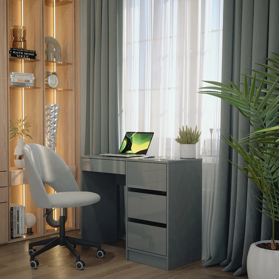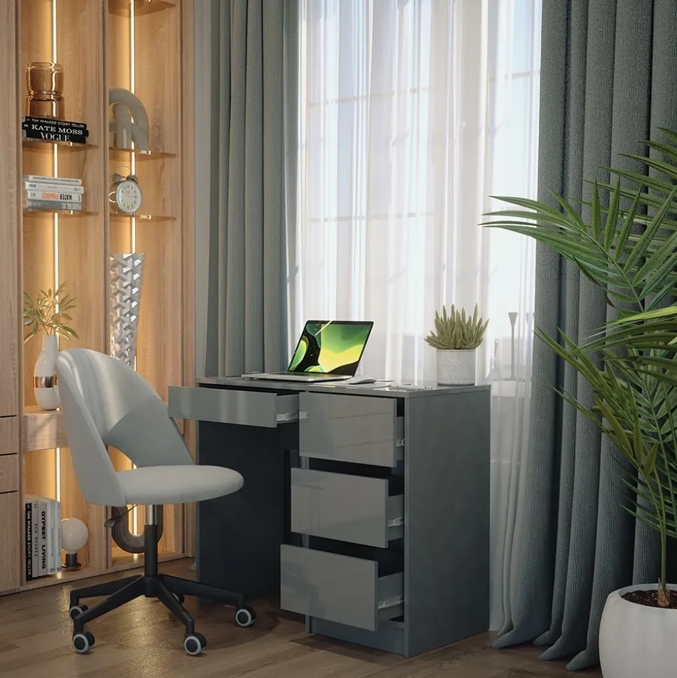 Der Schreibtisch Sherry ist der perfekte Begleiter für alle, die viel am Computer arbeiten oder ein Homeoffice einrichten möchten. Mit seinen vier Schubladen bietet er genug Stauraum für alle wichtigen Unterlagen und Arbeitsutensilien. Doch das ist längst nicht alles: Das funktionelle Design des Schreibtisches erlaubt es, ihn mit vielen anderen Möbelstücken zu kombinieren und so eine perfekte Arbeitsumgebung zu schaffen. Die robuste Konstruktion garantiert langfristige Stabilität und das hochwertige Material gibt dem Tisch eine edle Optik. Wenn Sie also nach einem Schreibtisch suchen, der nicht nur funktional, sondern auch stilvoll ist, ist Sherry die perfekte Wahl!