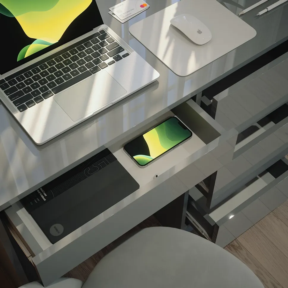 - Dieser Computertisch mit Schubladen bietet viel Stauraum und eine robuste Konstruktion.