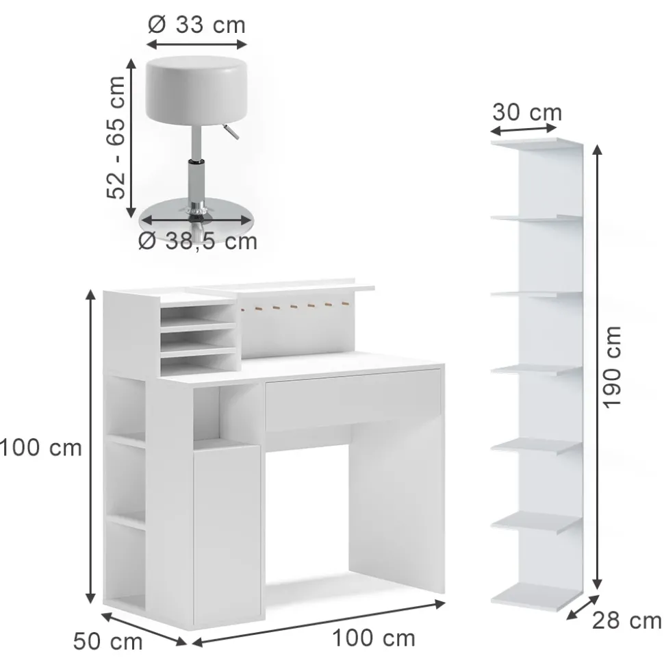 - MAßE: Das Schreibtisch Set hat 3 Teile und die detaillierten Größen sind auf den Fotos angegeben.