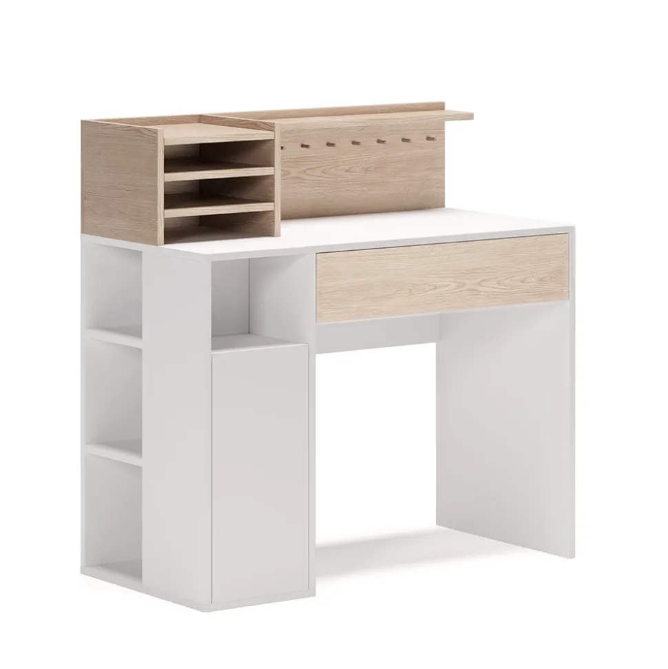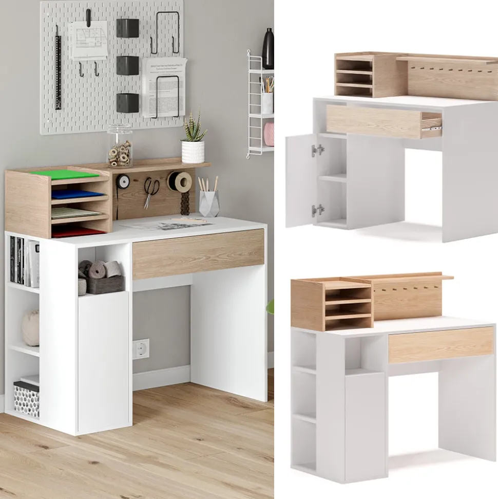 Mit diesem Schreibtisch hat man alles, was man für ein erfolgreichen Büro- oder Homeoffice-Tag braucht! Das Modell bietet nicht nur Arbeitsfläche, sondern auch genügend Stauraum. Es verfügt über ausziehbare Schubladen und offene Regale, in denen wichtige Utensilien wie Stifte, Notizbücher oder Ordner ihren Platz finden. Durch das funktionelle Design eignet sich der Schreibtisch nicht nur für Büroarbeiten, sondern auch für Hobbies wie Nähen oder Basteln. Mit diesem Tisch bleibt der Arbeitsplatz aufgeräumt und übersichtlich. Dieses Modell gibt es auch in anderen Ausführungen – passend für jeden Geschmack und jedes Zuhause. Machen Sie sich das Leben leicht und starten Sie mit diesem Schreibtisch in einen erfolgreichen Arbeitstag!