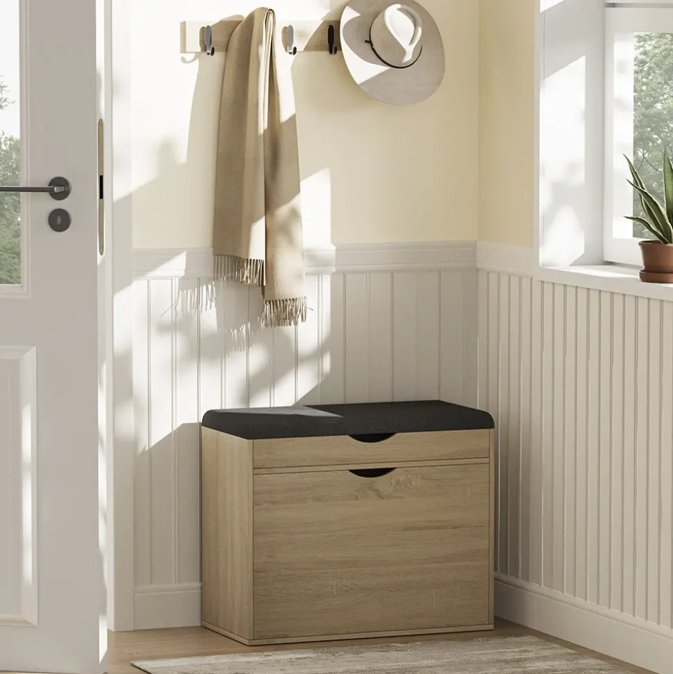 - MATERIAL: Dieser Schrank für die Schuhe besteht aus pflegeleichtem MDF; die Sitzfläche ist aus Polyurethanschaum mit Polyesterbezug – bequem und leicht zu reinigen.