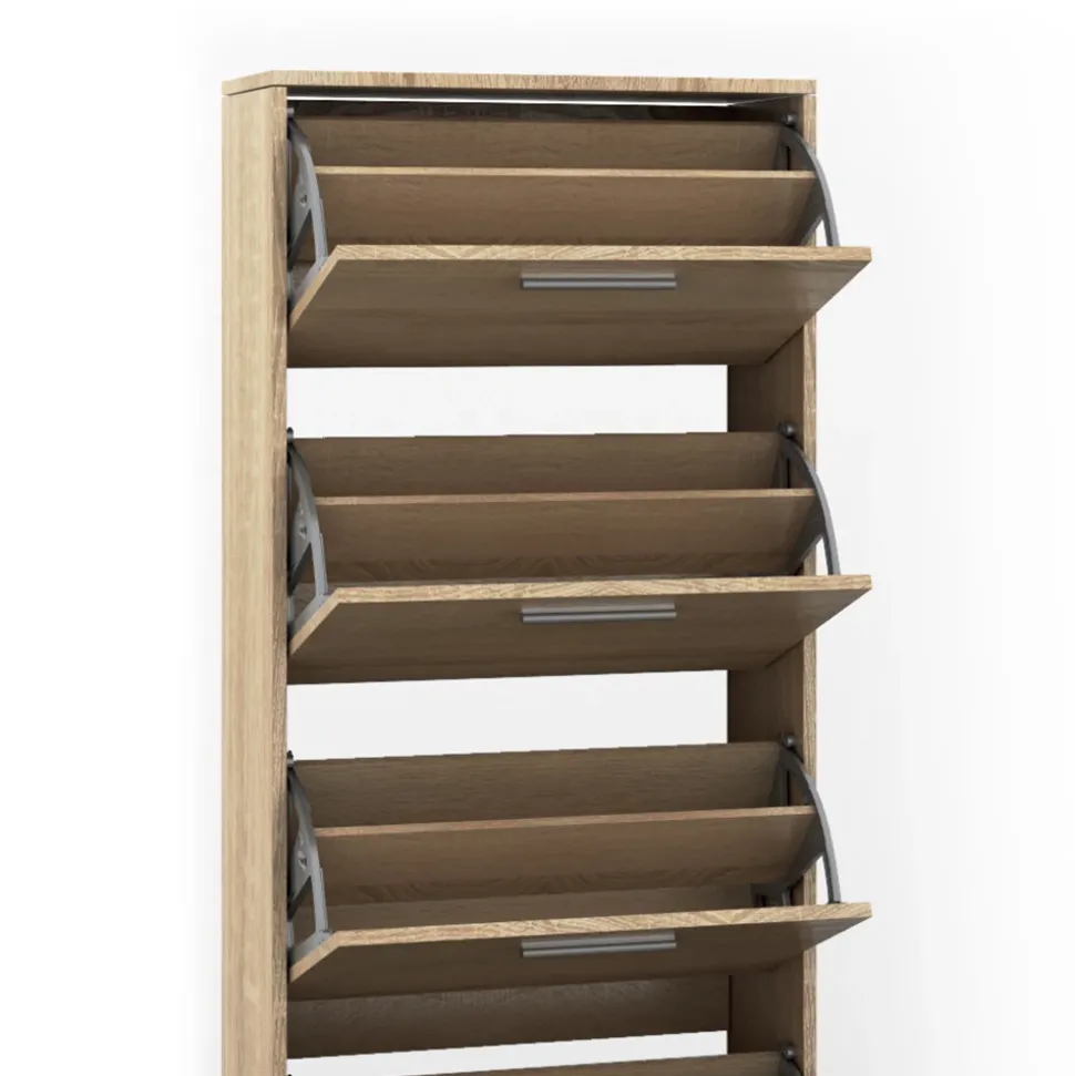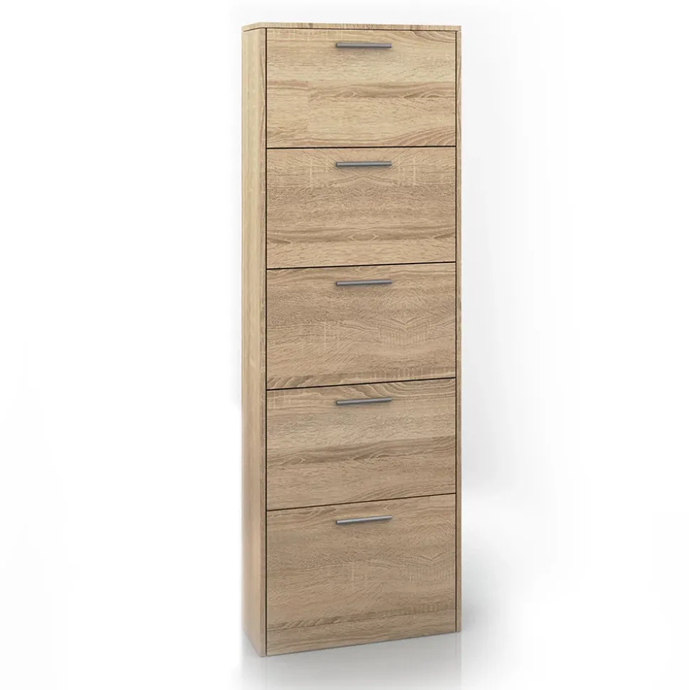 - MAßE: Der Schuhschrank hat eine Breite von 59 cm, eine Höhe von 169,5 cm und eine Tiefe von 22 cm. Alle detaillierten Größen sind auf den Fotos angegeben.