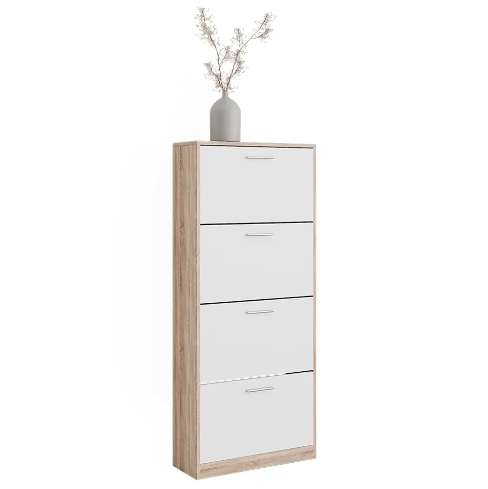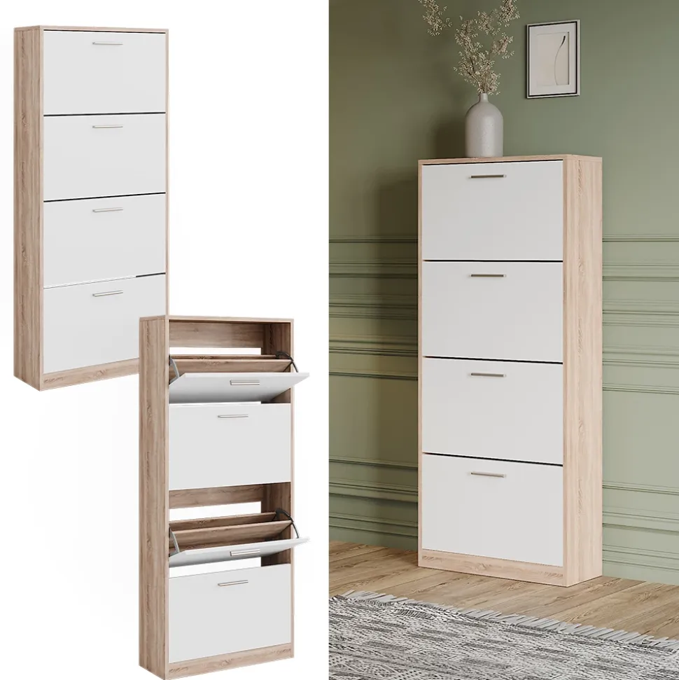 - Das Schuhregal verfügt über 4 klappbare Schuhfächer, die reichlich Stauraum bieten und dabei platzsparend sind. Ideal für eine ordentliche und praktische Aufbewahrung Ihrer Schuhe.
