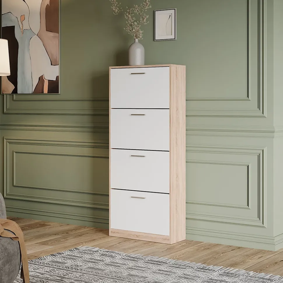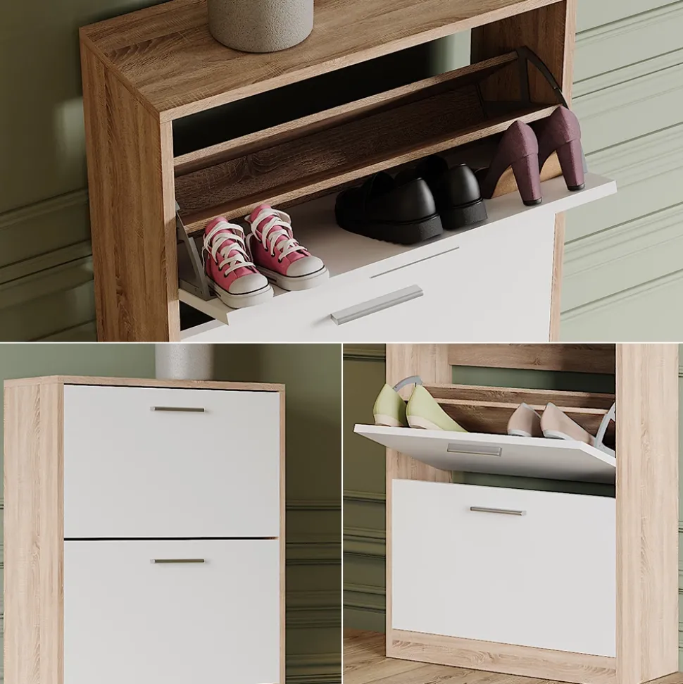 - MATERIAL: Der Schuhkipper besteht aus pflegeleichter, melaminharzbeschichteter 16 mm Spanplatte.