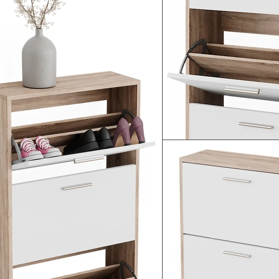 - MAßE: Der Schuhschrank hat folgende Abmessungen: Tiefe: 22 cm, Breite: 59 cm und Höhe: 137 cm. Alle detaillierten Größen sind auf den Fotos angegeben.