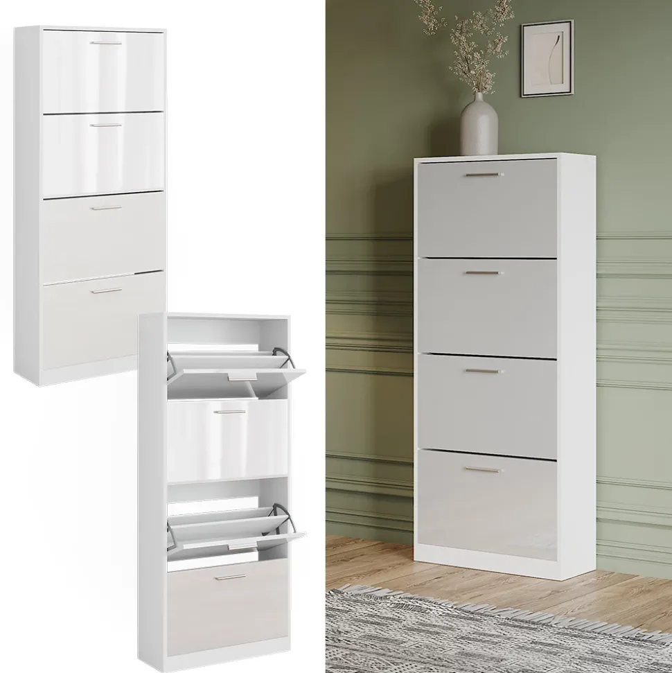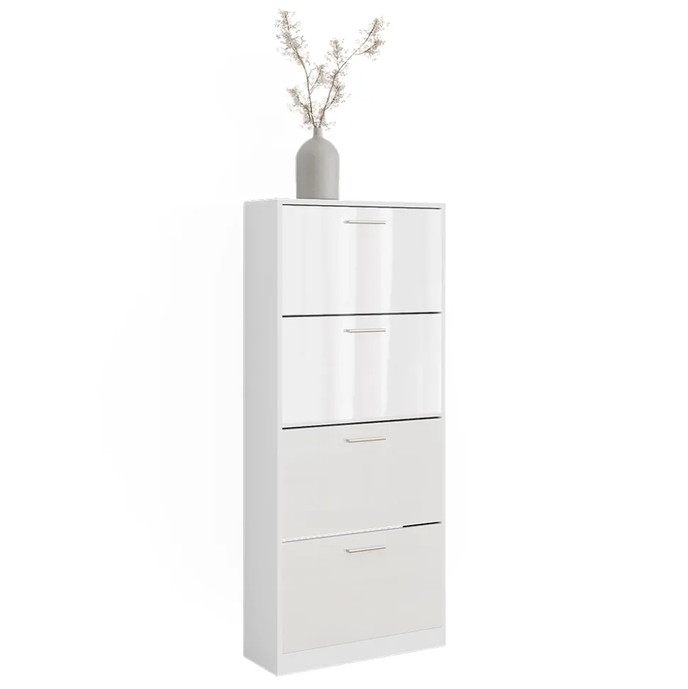 Der Schuhkipper „Gizmo“ ist die perfekte Lösung für alle, die ihren Flur ordentlich und stilvoll gestalten möchten. Mit seinem modernen Design passt er zu jedem Einrichtungsstil und bietet dank der 4 klappbaren Schuhrfächern reichlich Stauraum für all Ihre Schuhe. Die Schuhkommode ist nicht nur platzsparend, sondern auch kompatibel mit anderen Artikeln der Gizmo Collection.Bringen Sie Ordnung in Ihren Flur und erleichtern Sie sich das Leben mit dem praktischen und stilvollen Schuhschrank.