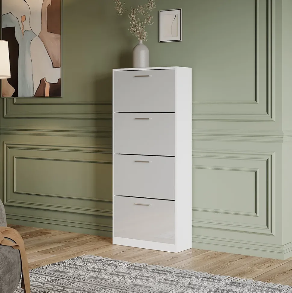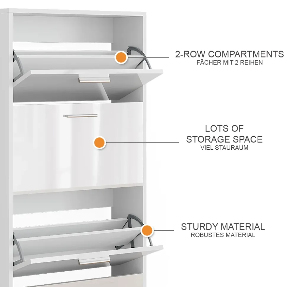 - MATERIAL: Der Schuhkipper besteht aus pflegeleichter, melaminharzbeschichteter 16 mm Spanplatte.