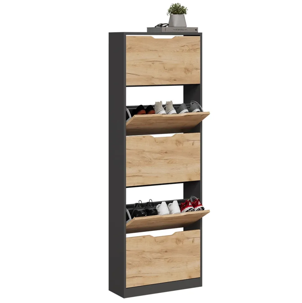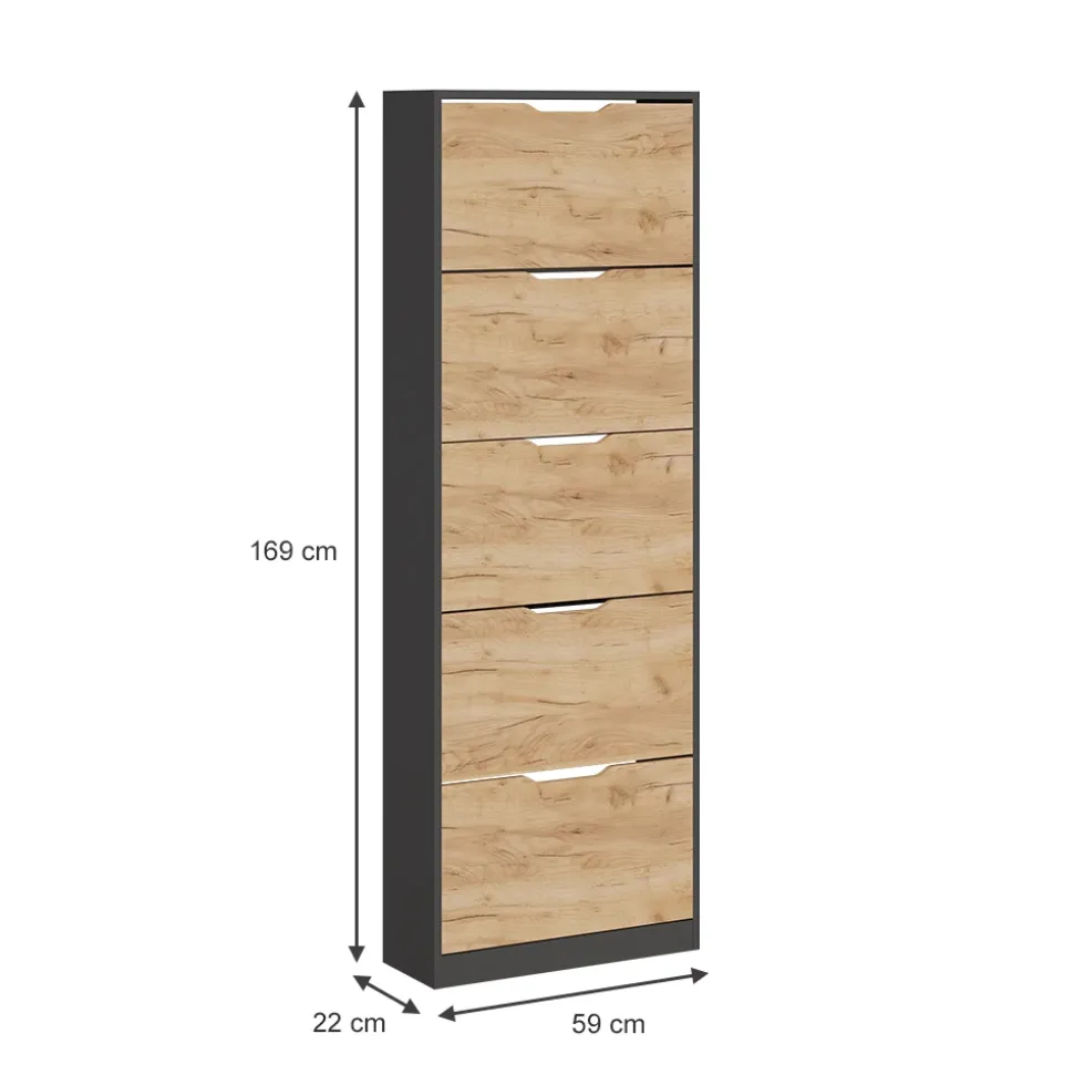 - MAßE: Der Schuhschrank hat eine Breite von 59 cm, eine Höhe von 169 cm und eine Tiefe von 22 cm. Alle detaillierten Größen sind auf den Fotos angegeben.