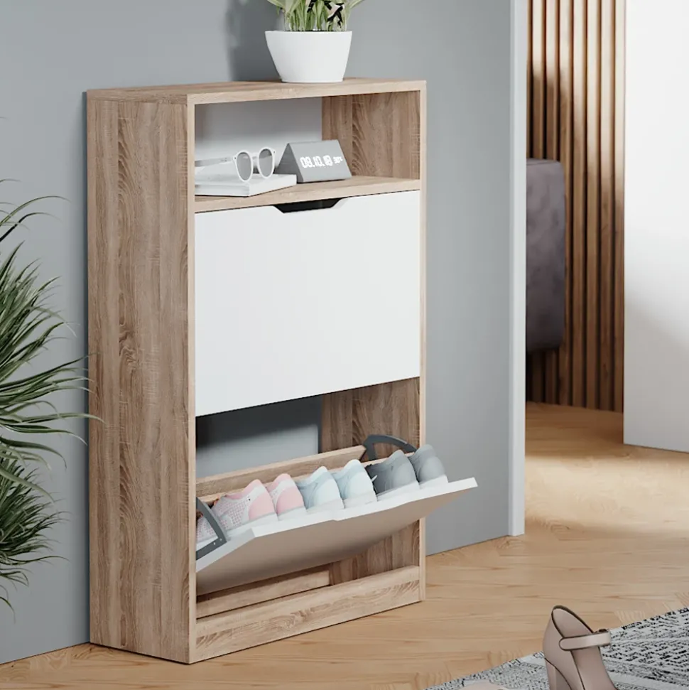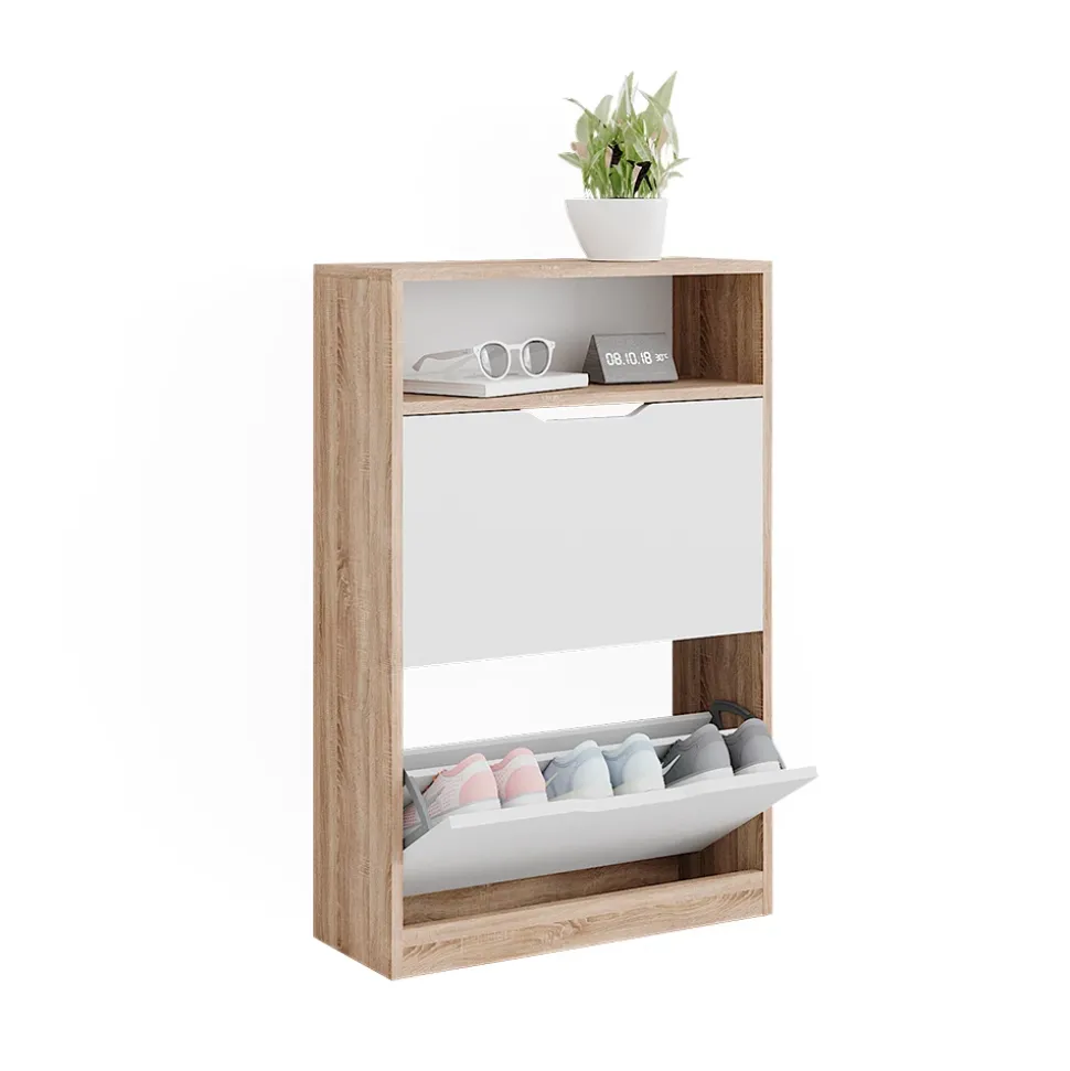 - MAßE: Der Schuhschrank mit 2 Fächern hat eine Tiefe von 22 cm, eine Breite von 59 cm und eine Höhe von 89,5 cm. Alle detaillierten Größen sind auf den Fotos angegeben.