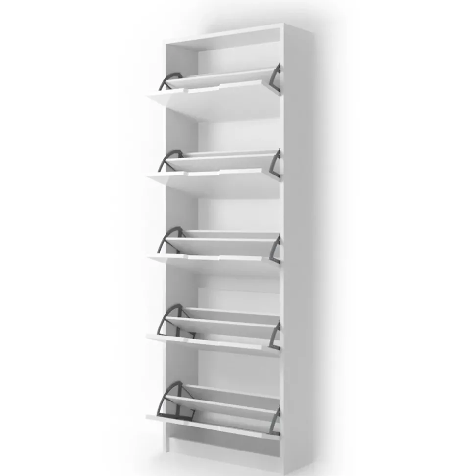 Luca ist ein Schuhkipper, der perfekt in jeden modernen Flur passt. Mit seinen 5 klappbaren Schuhregalen bietet er reichlich Stauraum für viele Paare Schuhe. Der Schuhkipper ist nicht nur äußerst praktisch, sondern auch platzsparend und kann daher auch in kleineren Fluren eingesetzt werden. Luca ist kompatibel mit anderen Artikeln der Kollektion und kann so perfekt mit anderen Möbelstücken kombiniert werden, um ein stimmiges Gesamtbild zu erzielen. Der Schuhkipper Luca ist die perfekte Lösung für alle, die auf der Suche nach einem praktischen und stilvollen Schuhschrank sind. Überzeugen Sie sich selbst von der Qualität und Funktionalität von Luca und schaffen Sie sich damit eine aufgeräumte und stylische Eingangshalle.