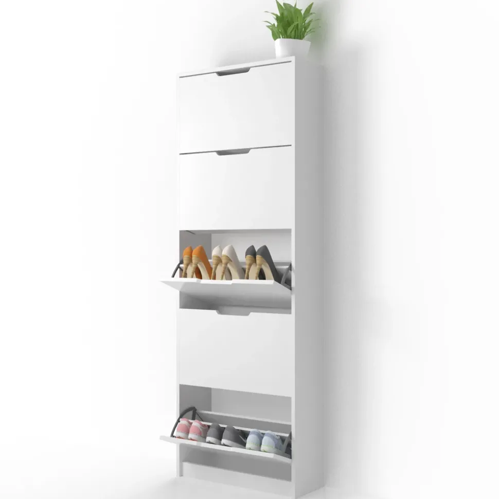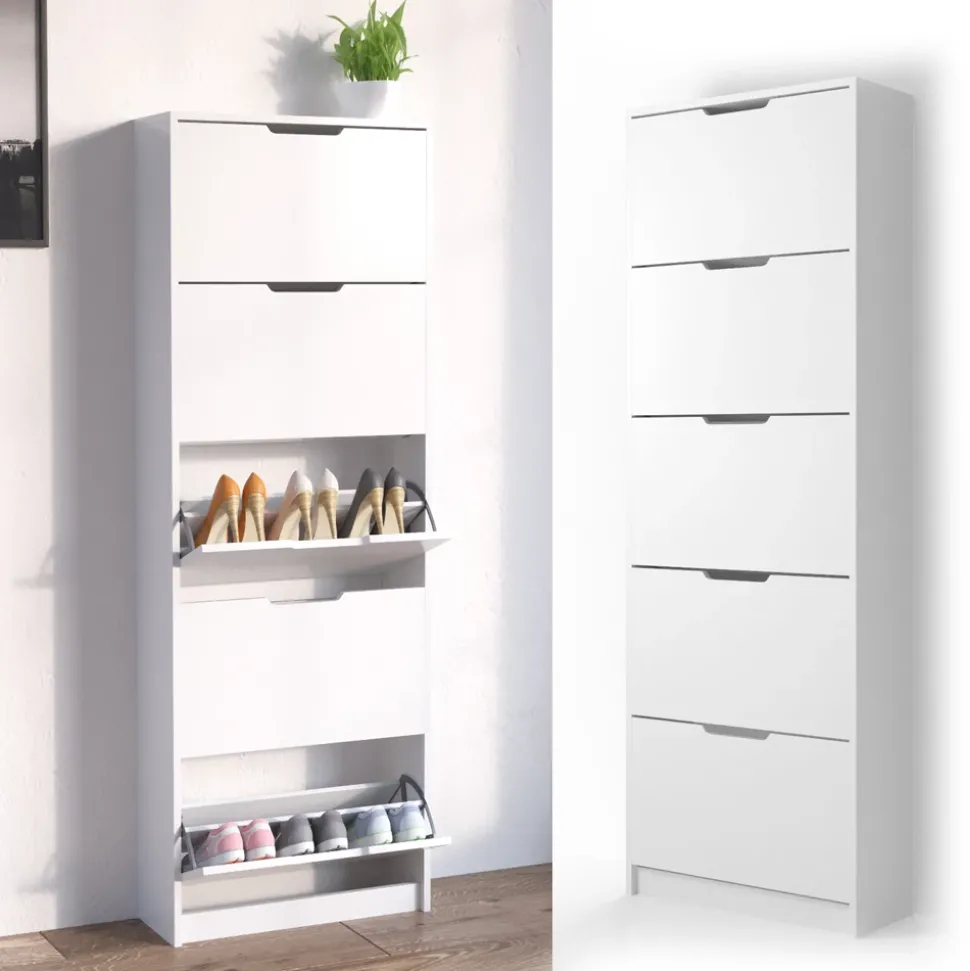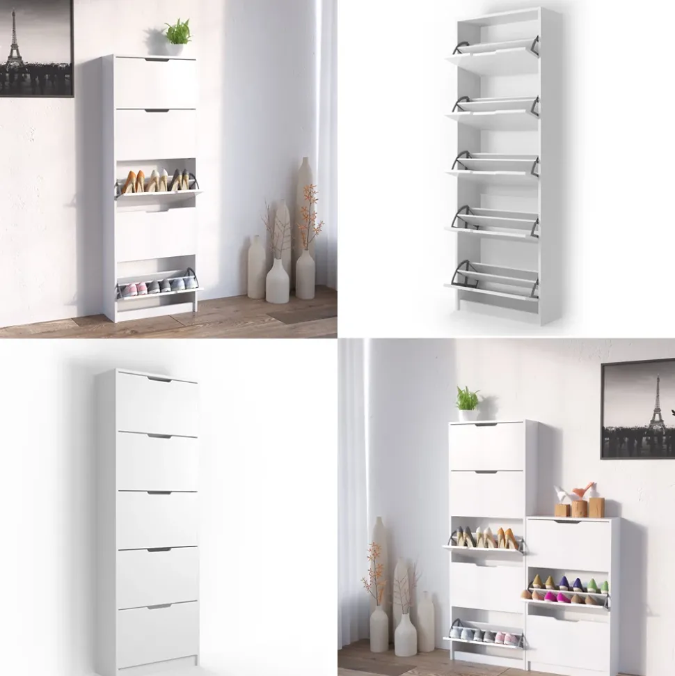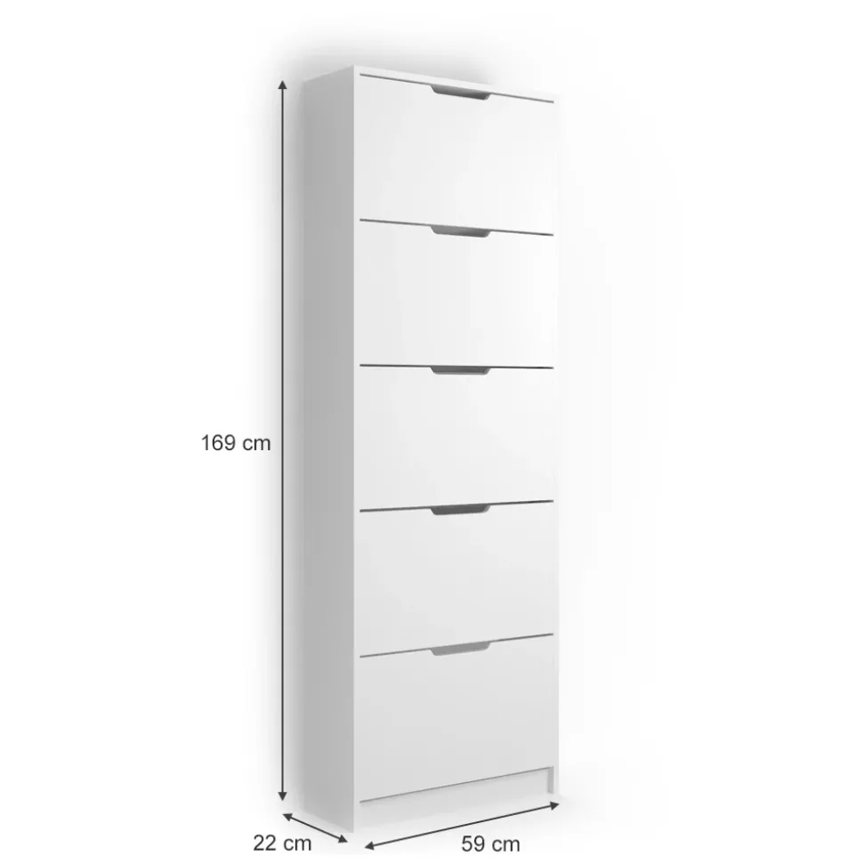 - MAßE: Der Schuhschrank hat eine Breite von 59 cm, eine Höhe von 169 cm und eine Tiefe von 22 cm. Alle detaillierten Größen sind auf den Fotos angegeben.