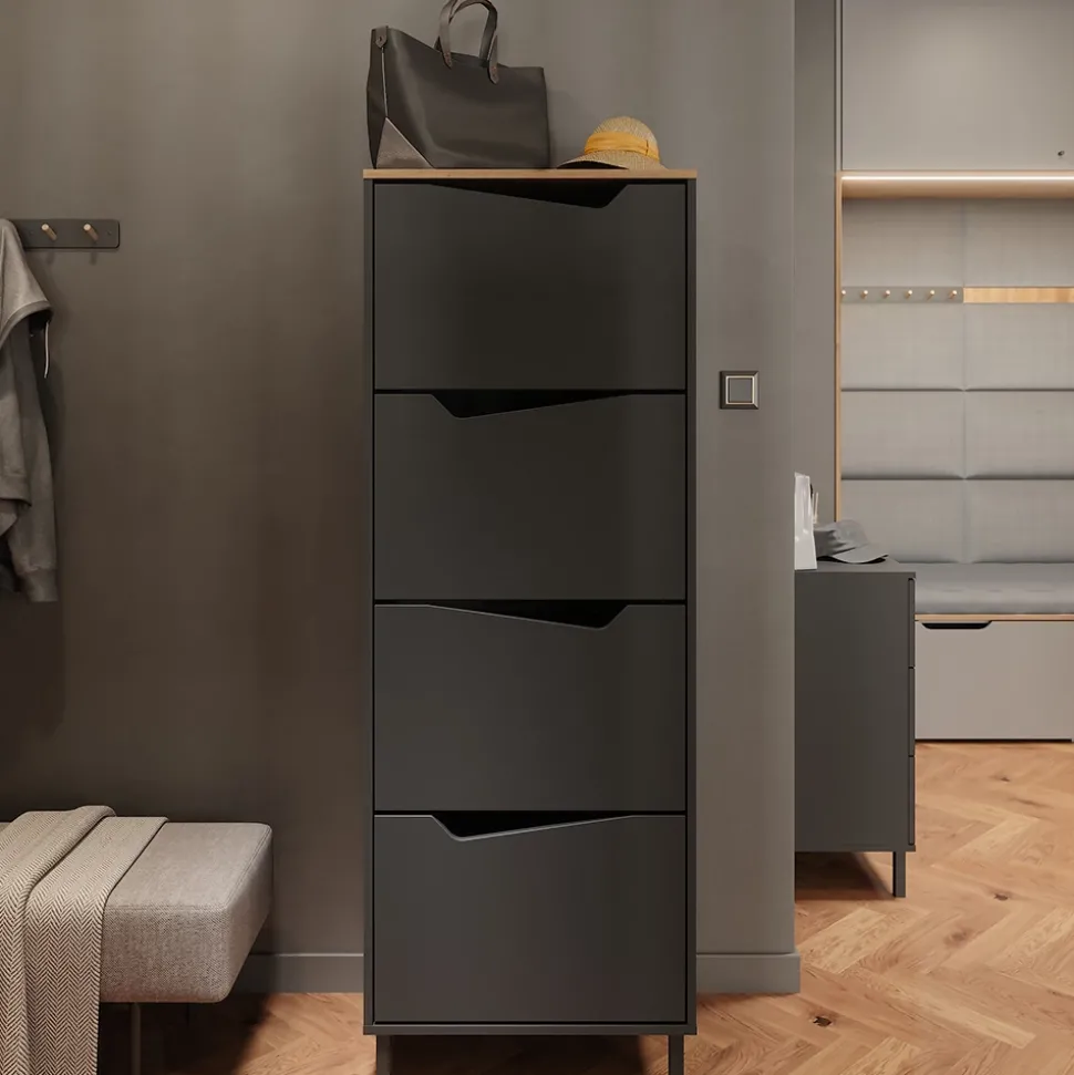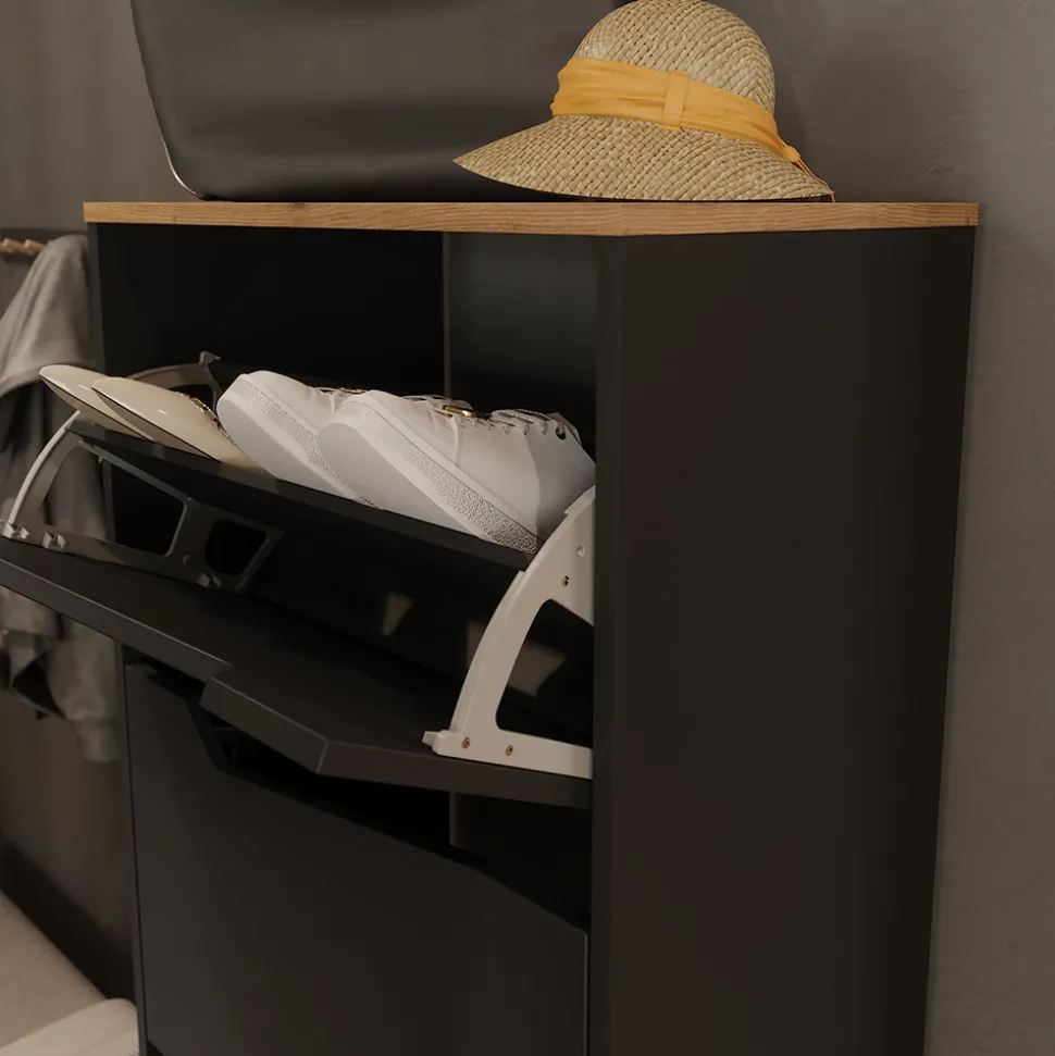 - Die Schuhkommode „Marelle“ ist die optimale Lösung für jede Wohnung, um Schuhe stilvoll und ordentlich aufzubewahren.