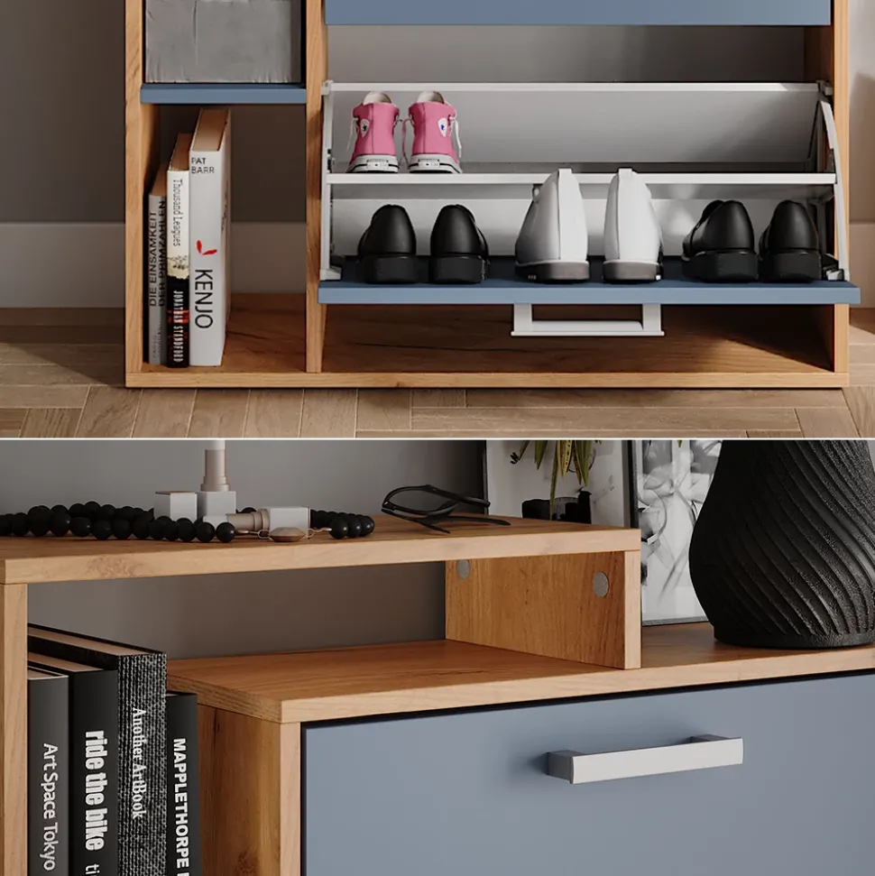 - Die Schuhkommode „Orlando“ ist die optimale Lösung für jede Wohnung, um Ihre Schuhe stilvoll und ordentlich zu verstauen. Mit ihrem universellen Design passt sie perfekt in jeden Raum.