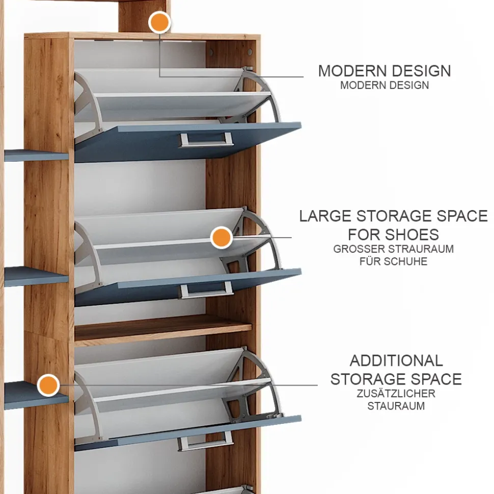 Mit dem Schuhkipper Orlando bekommen Sie nicht nur einen praktischen Schuhschrank für Ihren Flur, sondern auch ein modernes Möbelstück, das Ihr Zuhause aufwertet. Nie wieder chaotische Schuhberge im Eingangsbereich! Der Schuhkipper bietet genug Platz für all Ihre Lieblingsschuhe und sorgt für Ordnung und Übersichtlichkeit. Gönnen Sie sich dieses funktionale und stilvolle Möbelstück und machen Sie Ihren Flur zu einem einladenden und aufgeräumten Bereich in Ihrem Zuhause. Der Schuhkipper Orlando – ein Must-have für jeden, der Wert auf praktische Lösungen und Ästhetik legt!