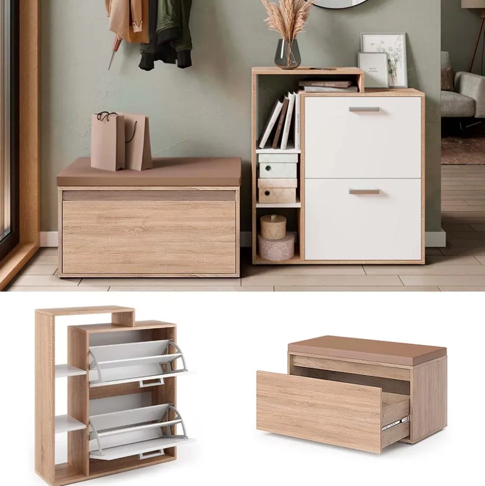- MATERIAL: Das Schuhregal Set besteht aus pflegeleichter Spanplatte, 16 mm, Melaminharzbeschichtung