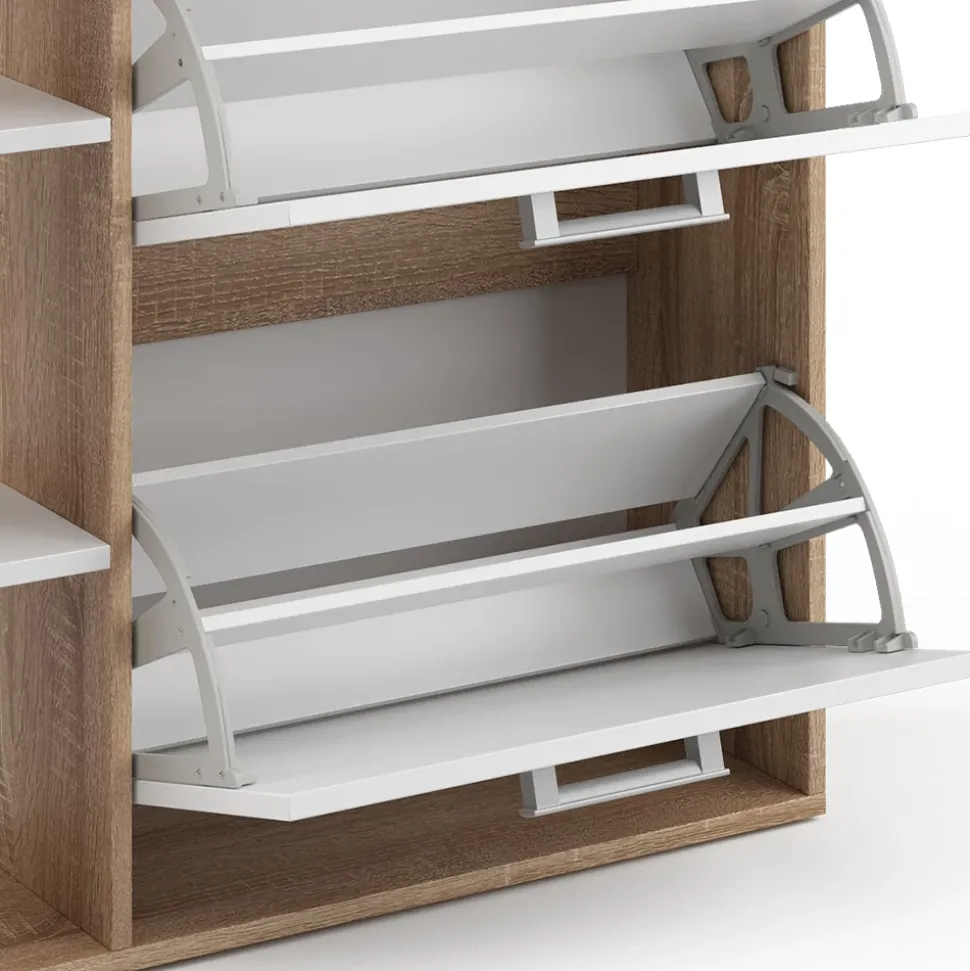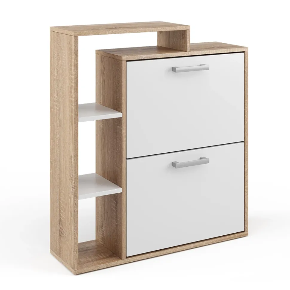 Der Schuhkipper Orlando ist ein praktisches Möbelstück für jeden Flur. Mit seinen zwei klappbaren Schuhregalen und den offenen Regalen bietet er genug Platz für alle Ihre Schuhe. Aber nicht nur das: durch sein funktionelles Design ist er auch als Schuhschrank, Schuhregal oder Schuhkommode einsetzbar. Dabei sparen Sie auch noch Platz, denn der Schuhkipper ist so konzipiert, dass er kompatibel ist mit anderen Artikeln der Kollektion Orlando. Doch der Schuhkipper ist nicht nur nützlich, sondern auch ästhetisch ansprechend: sein modernes Design passt sich jedem Einrichtungsstil an und verleiht Ihrem Flur einen frischen Touch. Lassen Sie Ihre Schuhe nicht mehr herumstehen und holen Sie sich den Schuhkipper Orlando in Ihr Zuhause.