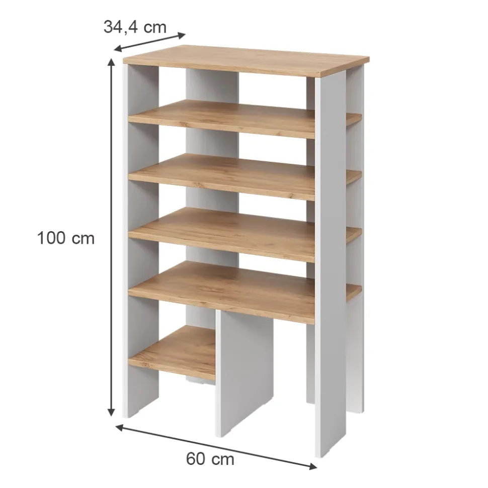 - MAßE: Das Schuhregal hat eine Tiefe von 34,4 cm, eine Breite von 60 cm und eine Höhe von 100 cm.