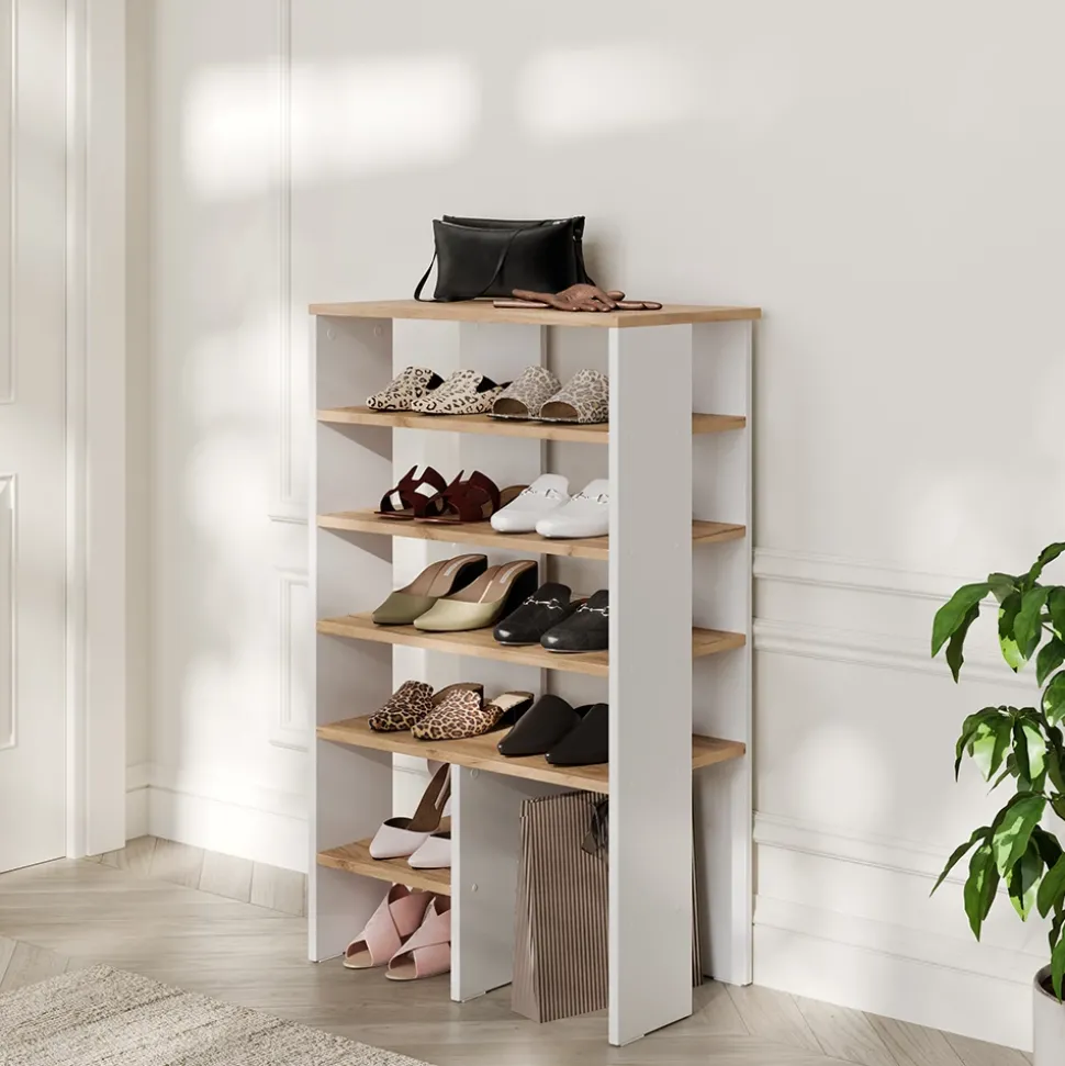 - Halten Sie Ihre Schuhe ordentlich und platzsparend mit einem Schuhständer. Sein stabiles Design bietet eine praktische Aufbewahrungslösung für Ihr Schuhwerk.