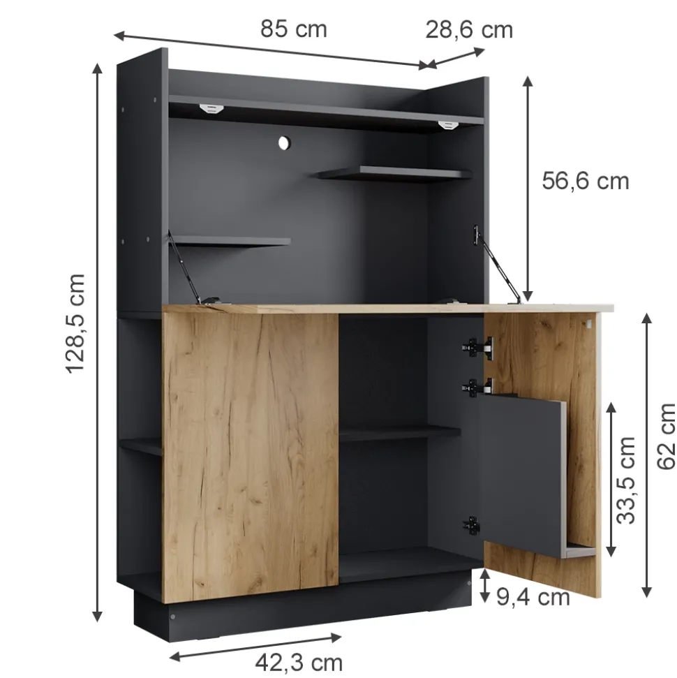 85 x 128.5 x 28.6 cm (BxHxT)