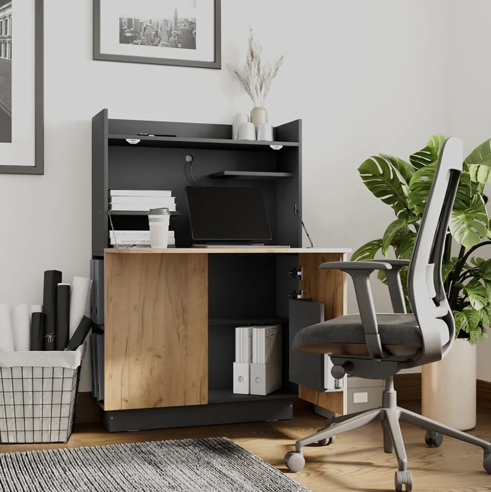 „Alena“ ist eine Möbelserie, die Schreibtische in Form von Sekretären umfasst. Mit ihrer eleganten Ästhetik und verschiedenen Farbkombinationen bieten die Schreibtische der Serie „Alena“ einen funktionalen Arbeitsbereich und eine stilvolle Ergänzung für Ihr Zuhause.