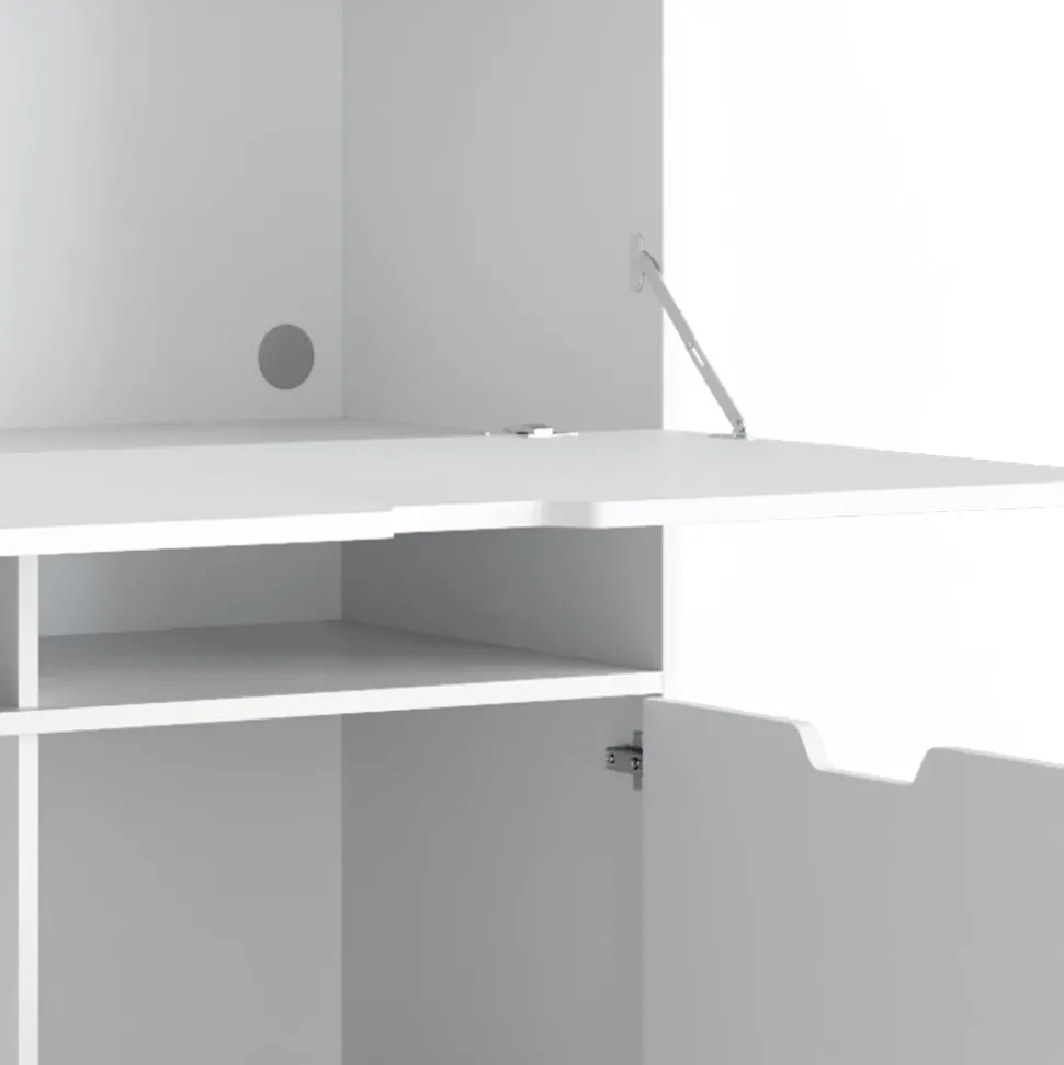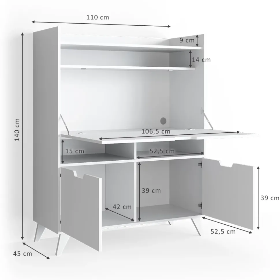 - MAßE: Der Bürotisch mit Stauraum hat eine Breite von 110 cm, eine Höhe von 140 cm und eine Tiefe von 45 cm. Alle detaillierten Größen sind auf den Fotos angegeben.