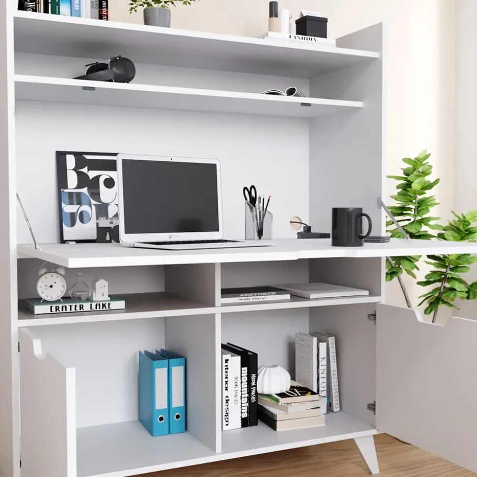 - Arbeitstisch mit Schrank bietet reichlich Stauraum mit 4 offenen und 3 geschlossenen Fächern für Büro oder Zuhause. Praktisch und funktional.