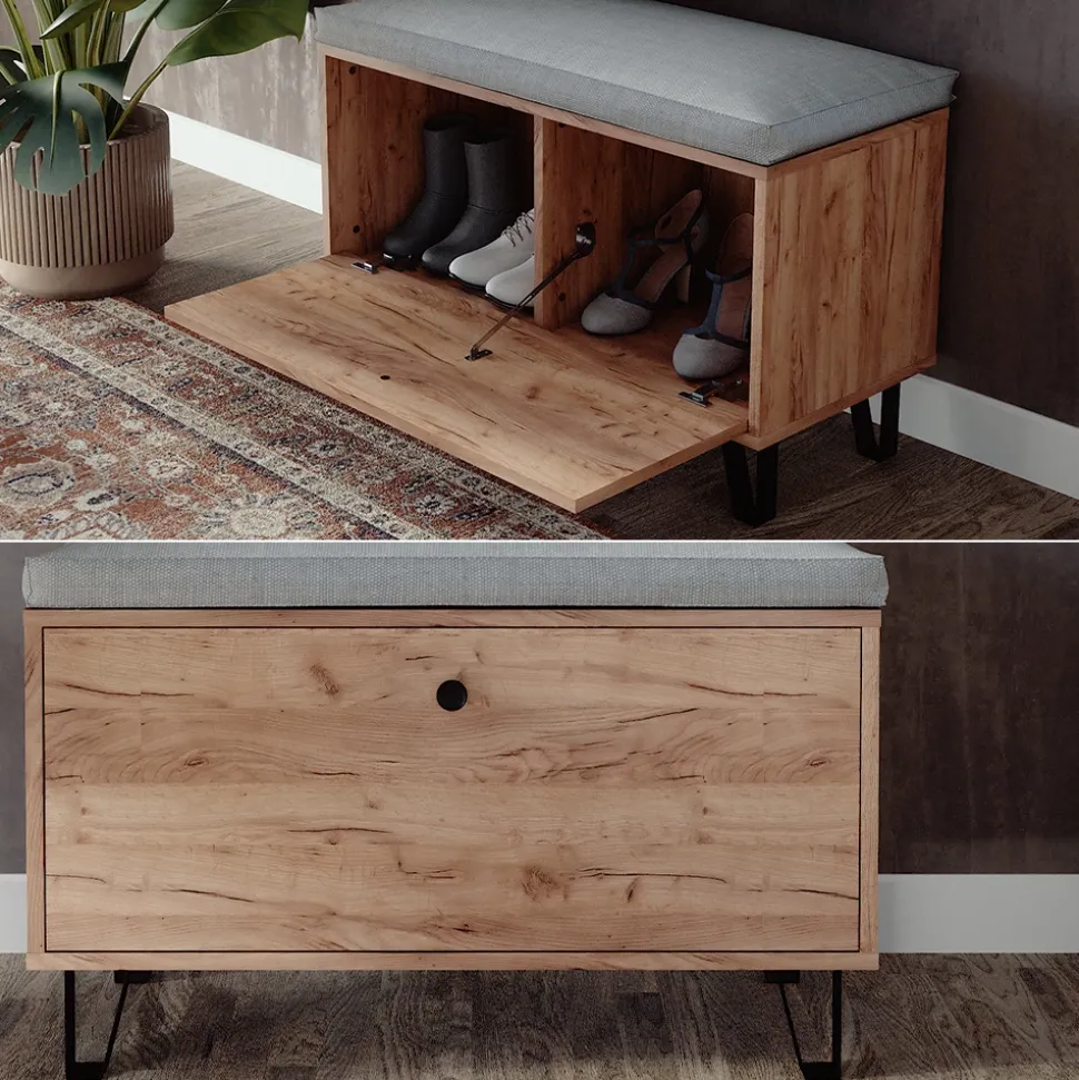 - Die Sitzbank mit Stauraum bietet praktischen Platz zum Verstauen von Gegenständen und dient gleichzeitig als gemütliche Sitzgelegenheit.