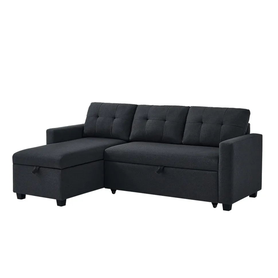 - Das Schlafsofa mit Bettkasten verfügt über eine praktische Aufbewahrungsbox und ist aus robustem Textil gefertigt. Außerdem ist es einziehbar und somit besonders platzsparend.