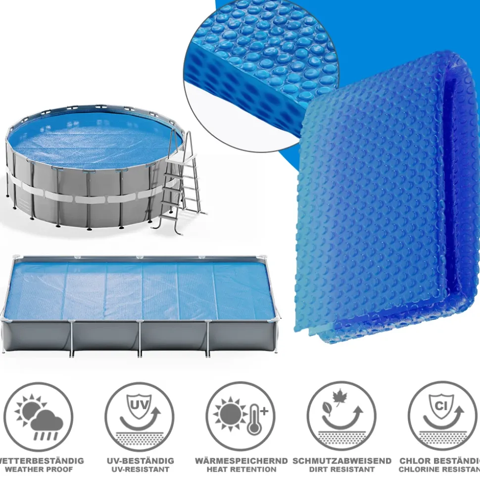- Die Poolheizung schützt vor Schmutz und ist einfach auf das Wasser zu legen. Zudem ist sie witterungsbeständig und somit ideal für den Einsatz im Freien.