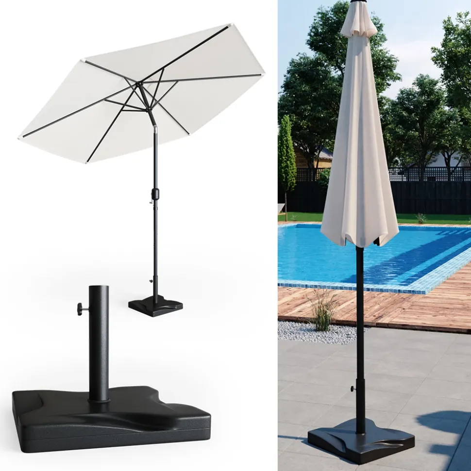 - Der Schirmfuß ist robust und wetterfest dank einer Füllung aus Betonisolierung. Eine langfristige Nutzung im Freien ist garantiert.