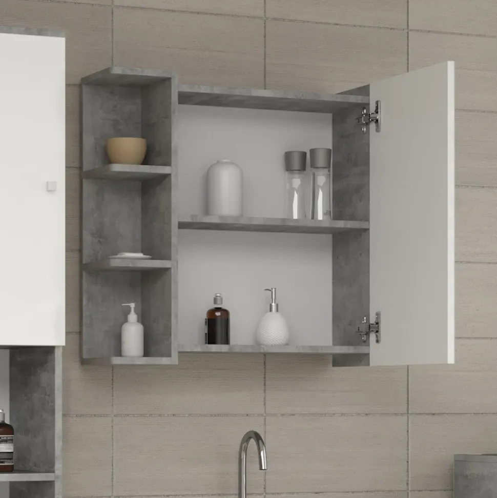 - Der Badezimmerspiegel ist ideal für kleine Badezimmer. Mit seinen offenen und geschlossenen Ablagefächern bietet er viel Stauraum für alle wichtigen Utensilien.