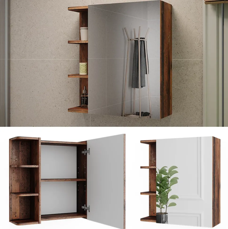 - MAßE: Badezimmerschrank mit Spiegel Tiefe: 20,8 cm, Breite: 62 cm, Höhe: 64 cm. Die detaillierten Größen sind auf den Fotos angegeben.